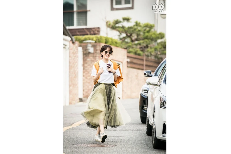 劇中飾演即便不停落選也不放棄夢想的音樂劇演員米卡,造型相對也時髦許多。因為要給人好印象,又要凸顯時尚感,清新脫俗的「霧光杏」能讓好感度與時髦感一同不過分的展現。
