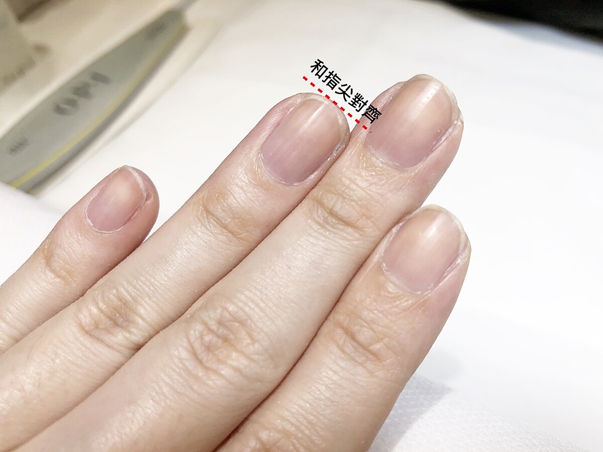 從側面看,指甲頂端和手指頭對齊的長度最好。剪指甲最怕不知不覺越剪越短,甚至很多人以為要剪掉整個白色才算乾淨,其實這樣反而容易讓指甲受傷。最適合的長度,是從側面看的時候,指甲頂端和手指頭對齊。這樣既美觀又不怕指甲藏汙納垢。