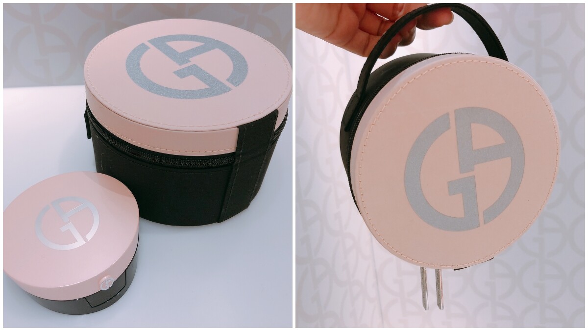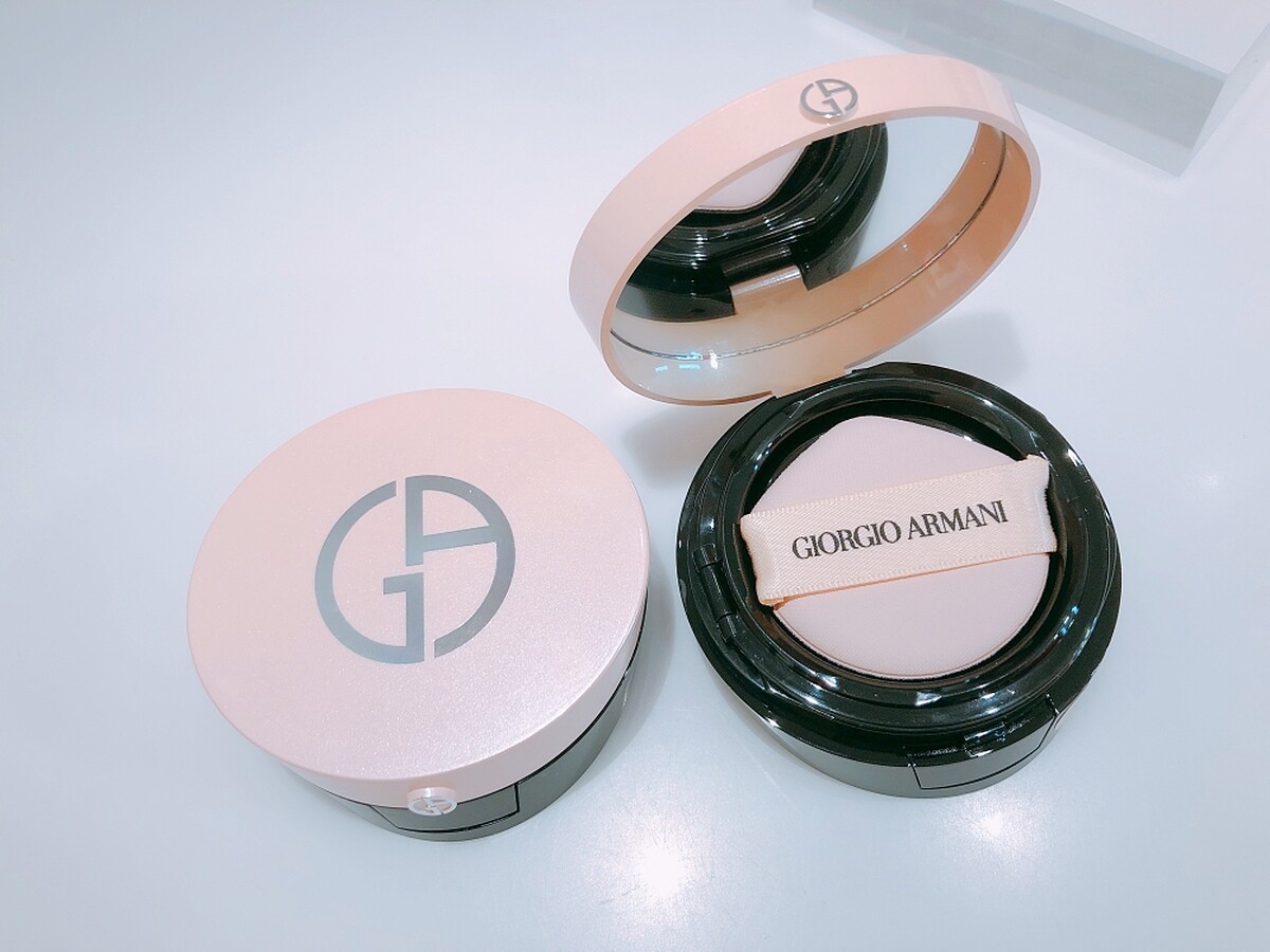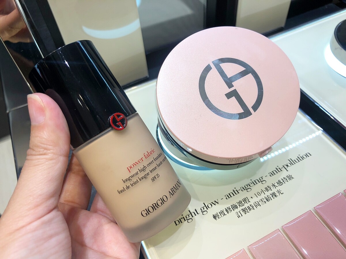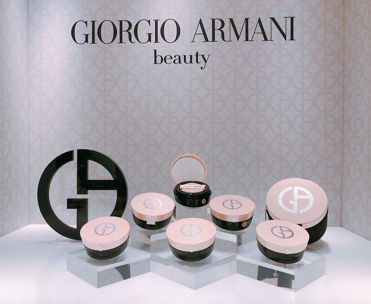 Giorgio Armani 去年推出第一款氣墊「訂製絲光精華氣墊粉餅」,充滿氣勢的亞曼尼紅外殼非常搶眼。2018年Giorgio Armani再推「訂製雪紡亮白精華氣墊粉餅」。和一般氣墊粉餅不同,主打「水蜜粉」質地,形成肌膚的水感防護膜,擦起來特別水潤保濕,訴求達到10小時水感持妝。