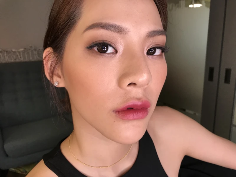 接著將#GREED櫻桃紅擺在唇心內往外延伸到大概1/2的位置,再利用乾淨的眼影將疊色的界線暈開來,形成外深內淺的漸層感。若是想讓唇型更立體,可以再沾一點微亮眼影粉點在唇珠上,會更性感。