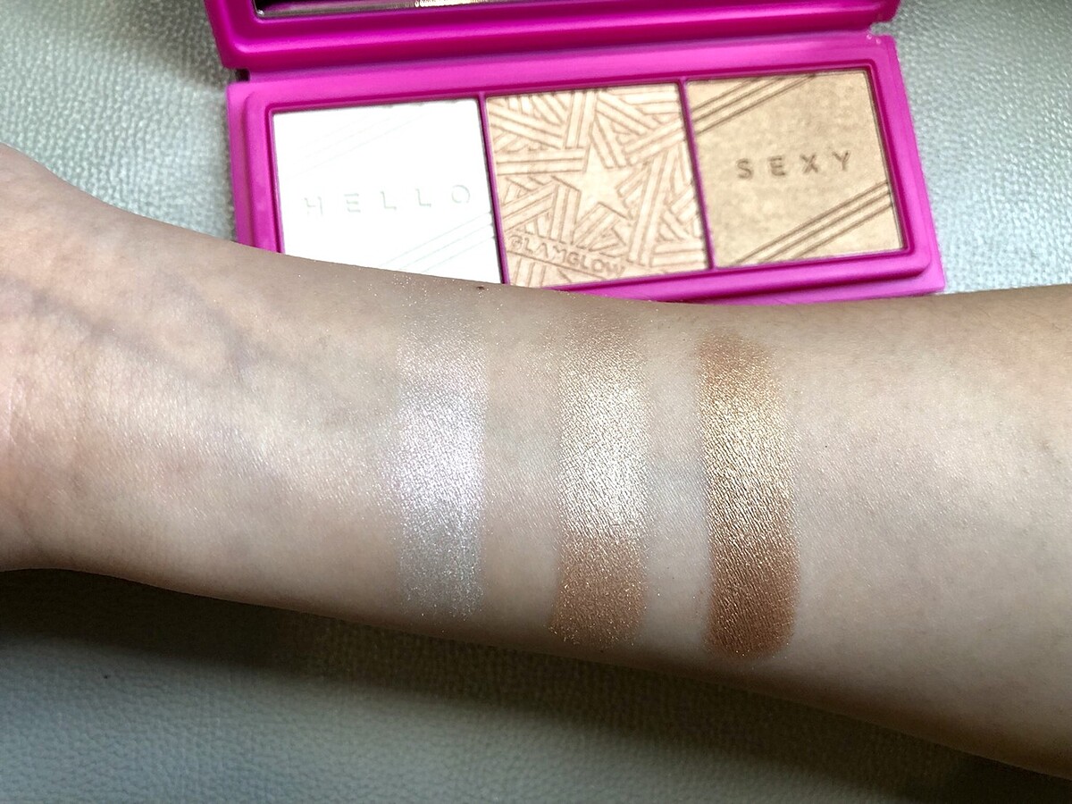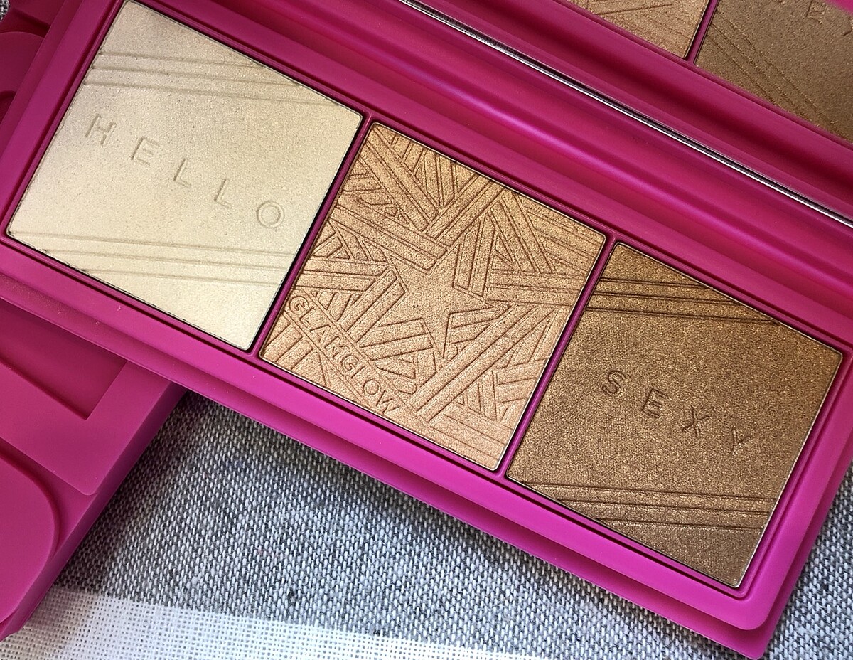 「超高調打亮盤」的三種光澤包括珍珠光、裸光與古銅光,珍珠光透著細緻螢光粉紅的色澤,屬於冷色調,古銅光則是暖色調,單色使用或交疊使用都可塑造出不同的立體光澤,使用在眼影或身體局部打亮也非常適合。