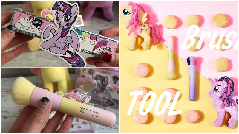 再來看看聯名商品賣的是什麼噱頭?榮獲urcosme刷具第一名,只要一出貨,就迅速被網友訂光的「BeautyMaker美肌修修無痕專業粉底刷」,竟然重新開模,從紫悅及柔柔的毛色得到靈感,開發出特別色─粉嫩黃與紫粉紅二款,從握柄到刷毛的做工都十分別緻、完全不馬虎,獲得資深小馬迷如我的驚呼。
