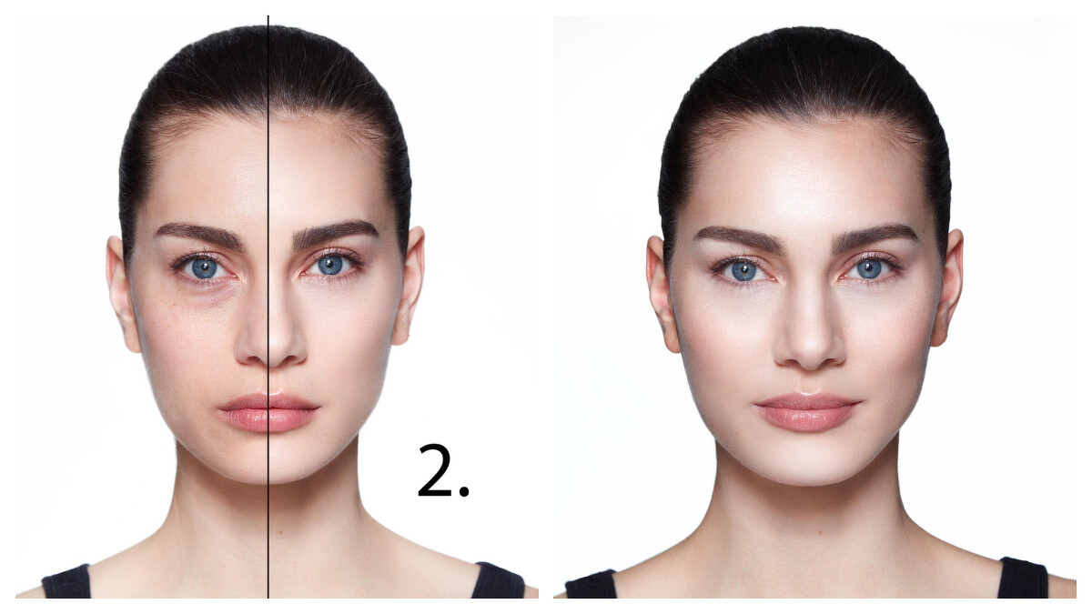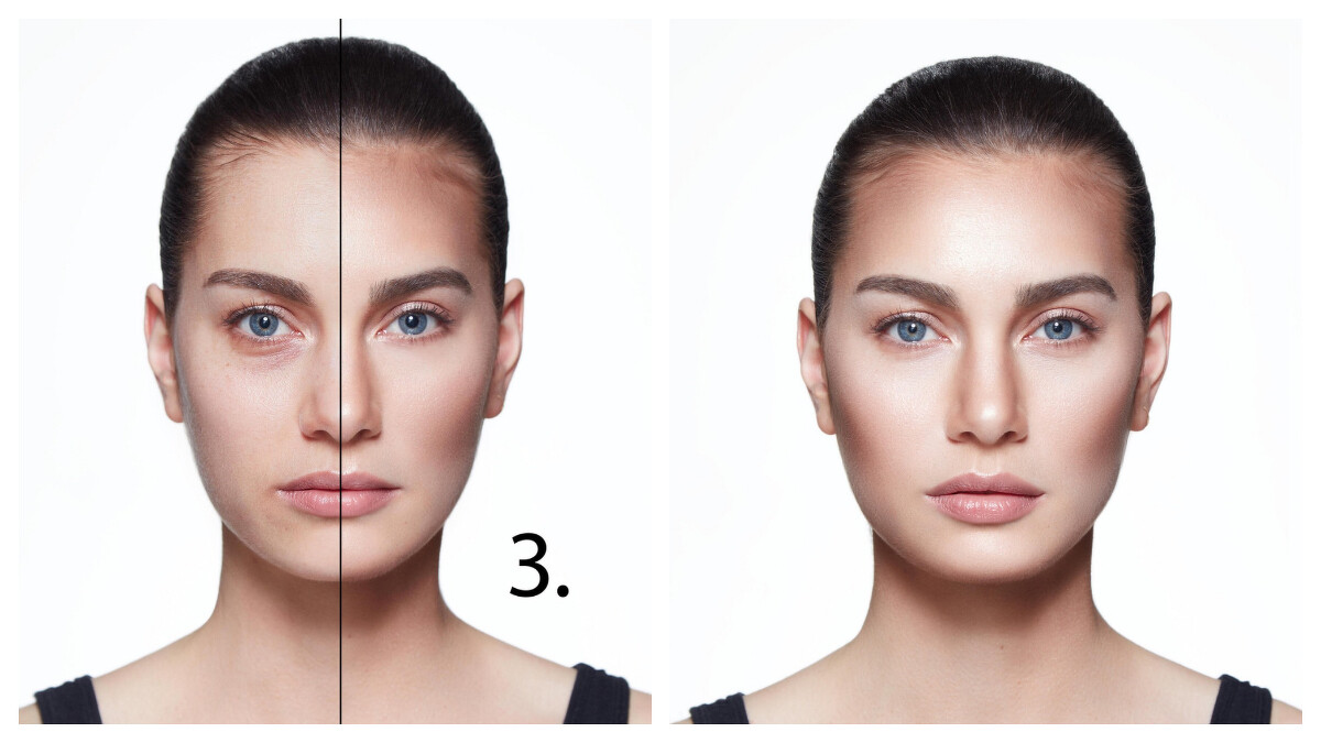 步驟三,使用彈力粉撲從臉部中心向外撲勻步驟四,使用打亮端,提亮T字C區步驟五,用略深色號,以霧面端在輪廓外圍進行修容步驟六,再次使用彈力粉撲仔細撲勻