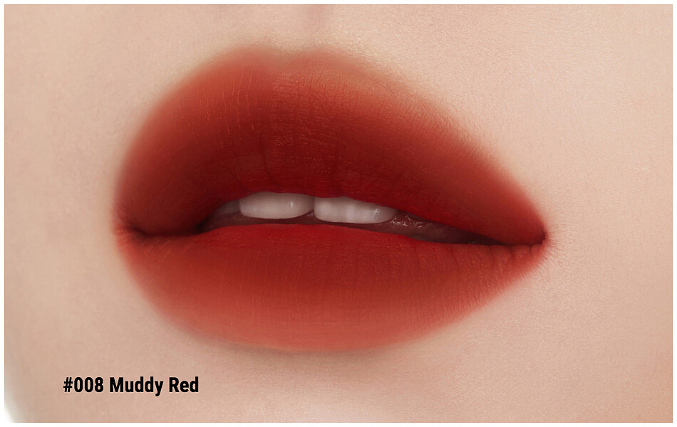 最後,唇彩後宮中絕對少不了一隻氣勢紅唇,從國民女友秀智到女神志玲姊姊,一定都有一支精選的戰袍級紅唇,人人必備。就以#008 Muddy Red為其中之最經典的女神款。