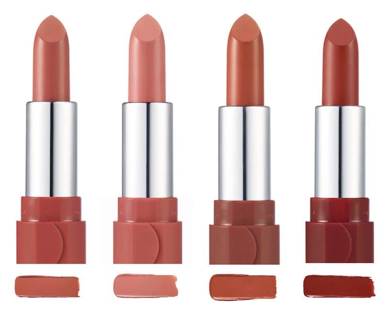 四款由淺至深的霧面咖啡唇色,色彩溫暖又百搭,同時可當作腮紅來做使用。
