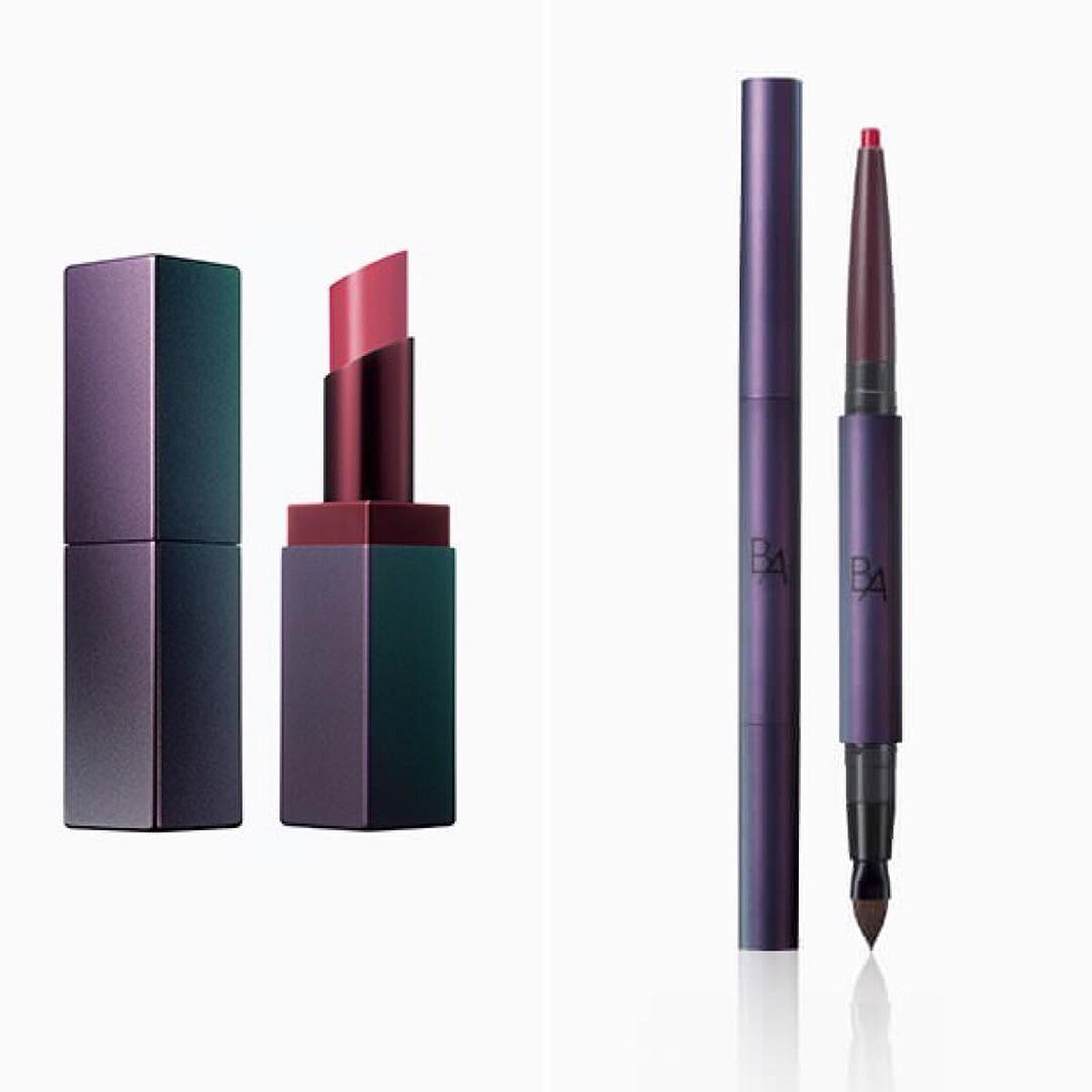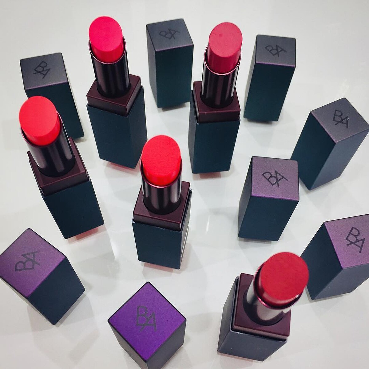 第一款為B.A Colors絲絨唇膏,質感的經典暗色包裝,口紅蓋上印有B.A的logo,簡約而個性。口紅添加了黑B.A系列共有的黃金繭精華和核心美容成分,保濕滋潤,完全可以塗出膨潤顯色的唇妝。共推出8色,具半霧面質感。
