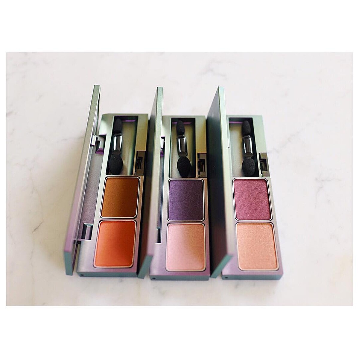 共推出5款,每款皆為雙色眼影盤,色澤深邃而知性。添加細膩的粉體和可溶於體溫的精華油,輕鬆描繪漸層效果。