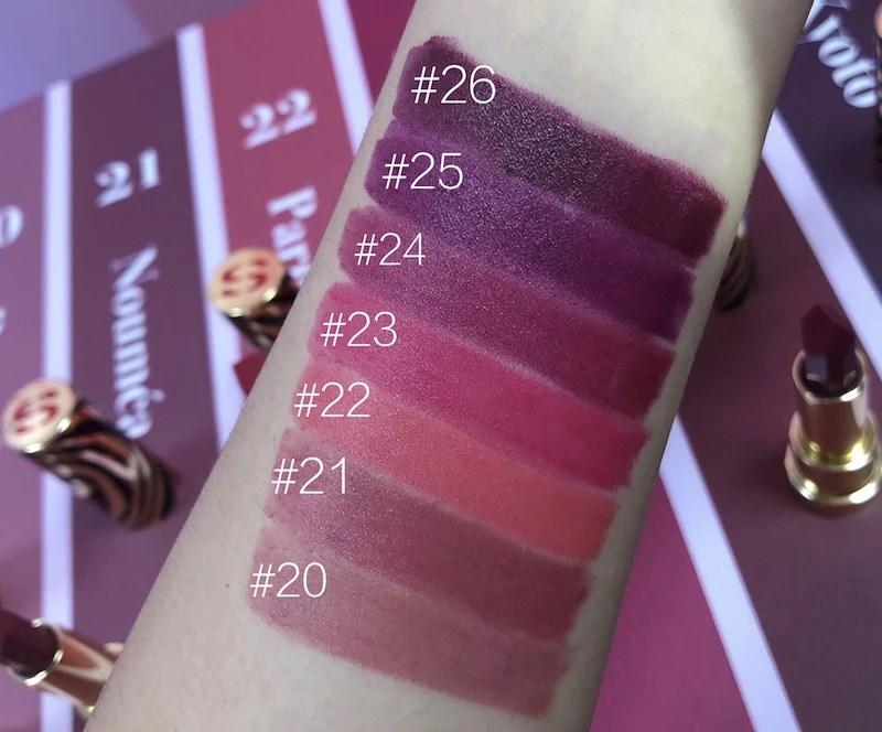 1.繽紛玫瑰色: 7種粉色調。代表色#22巴黎,展現女孩優雅和甜美的風情。搭配巴黎色號的同時,可在眼妝上加強眼線的描繪、頰彩從顴骨往太陽穴位置斜角刷染,讓妝容印象帶有一點文藝氣息。