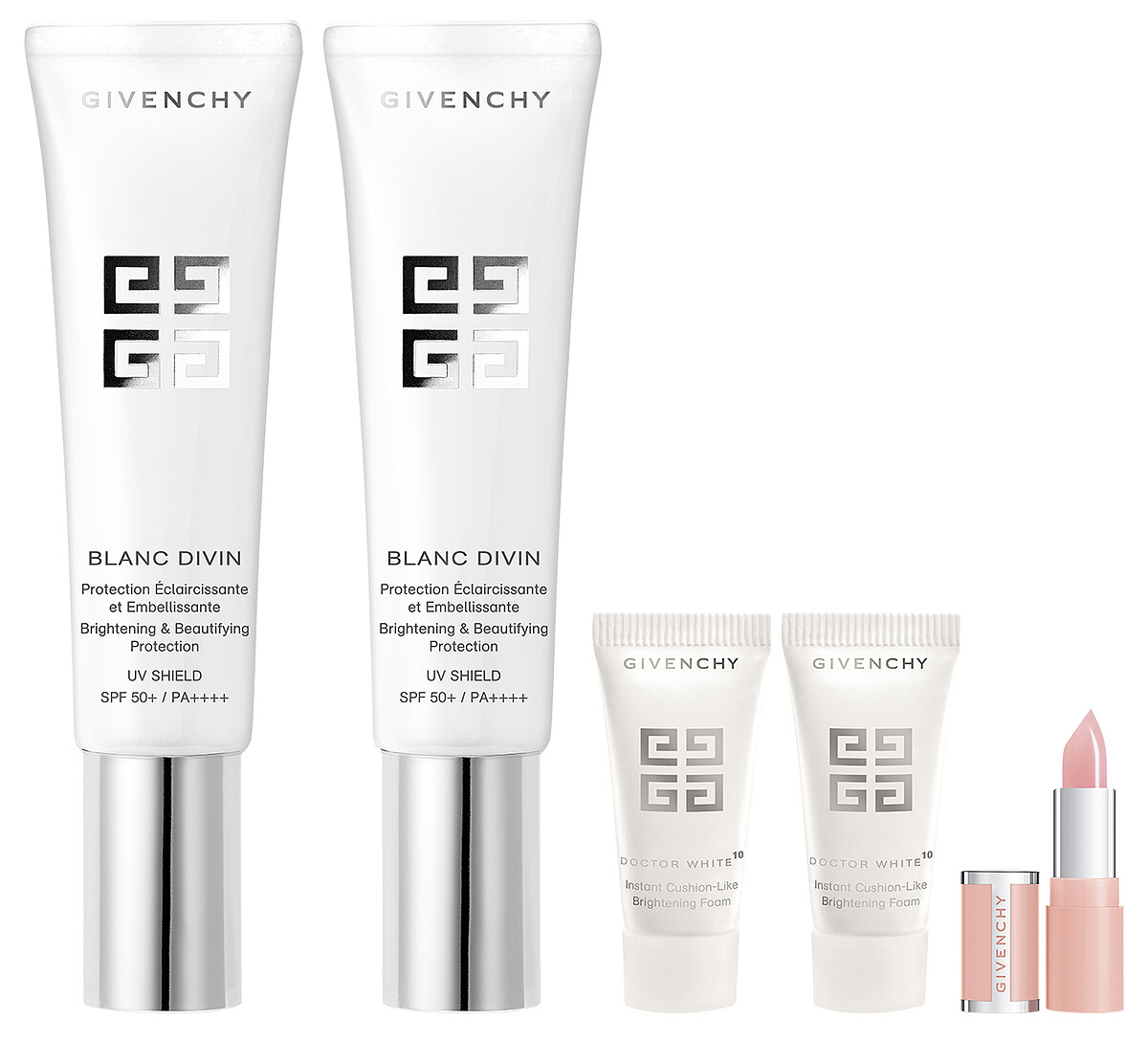 其實想打造當紅超模般的後台時尚妝容,這三樣缺一不可:妝前保養、底妝、唇妝,而就在今年週年慶,紀梵希都幫我們準備好了!首先是劃時代美白抗醣化保養明星「美白基礎護理組」,內含洗面乳和2018新作「花漾鑽肌淨白亮膚隔離乳」,做好清潔、防護的基礎護理,幫肌膚去黑掃黃提升淨白光感,為時尚妝容打好基礎就這組。