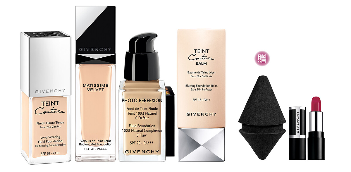 想每天變換不同妝效則推薦粉底液自選組,包括微霧光感「新超薄輕透雪紡紗粉底液」、絲滑明亮「魅力光爍緊緻無痕粉底液」、絲質光霧「光感美肌持久粉底液」、陶瓷光澤「光感美肌輕透粉底液」,明星粉底液四選二,即贈送在歐美掀起流行的「零死角彩妝星錐」和迷你香吻誘惑唇膏,讓妳有如專業彩妝師在身旁般隨心上妝!