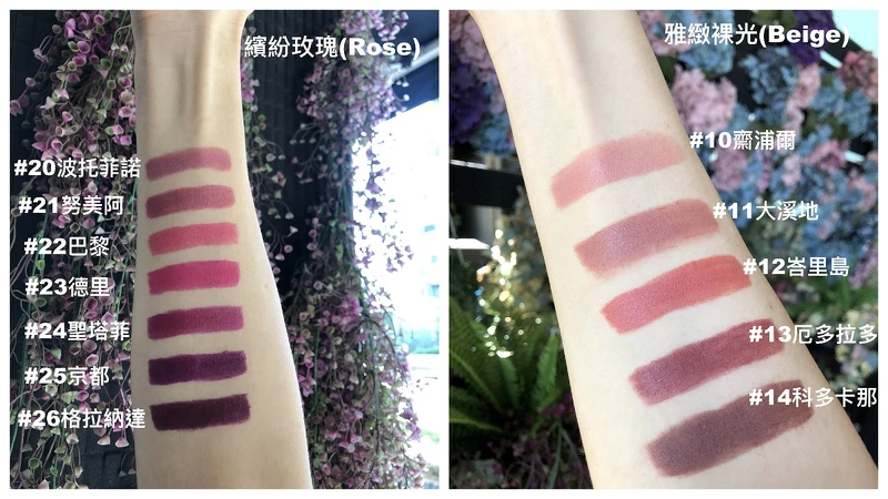 這次的「植物絲絨持久唇膏-城市經典紅唇系列」共分成四大色調!包含:雅緻裸光、繽紛玫瑰、艷陽暖橘、熱情潤紅,每個系列都由基底色再去延伸出多種獨特的色彩。