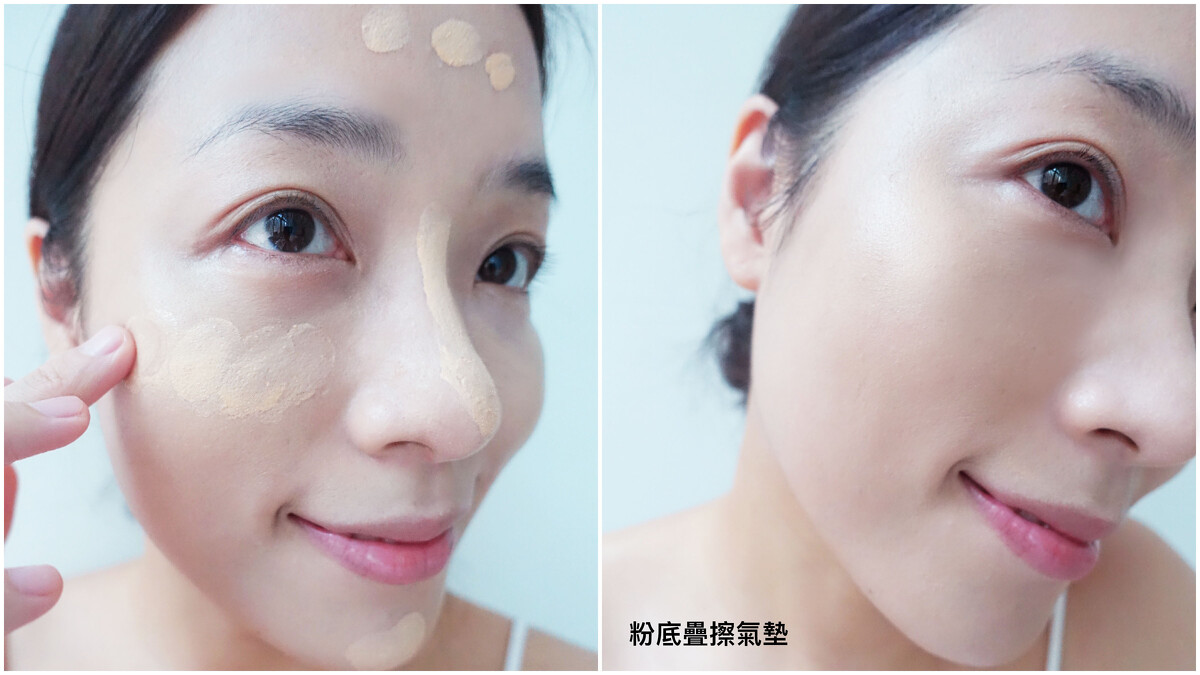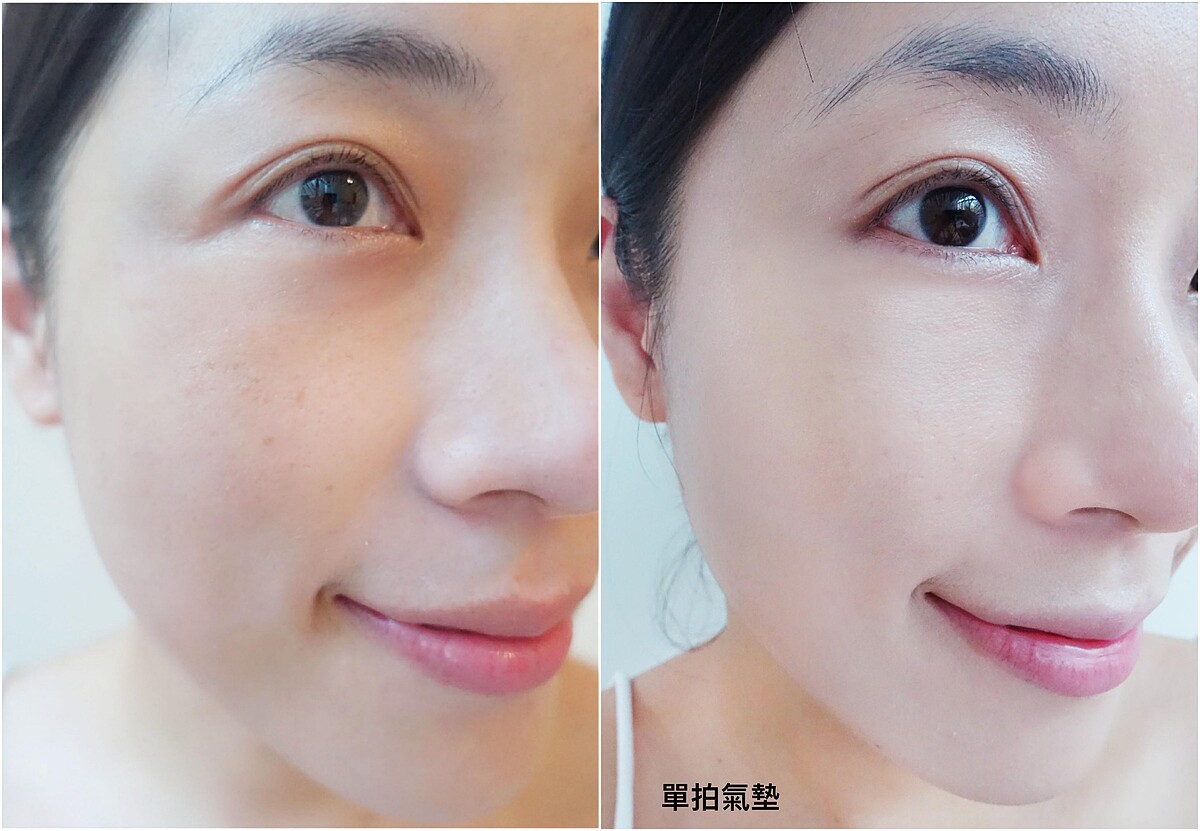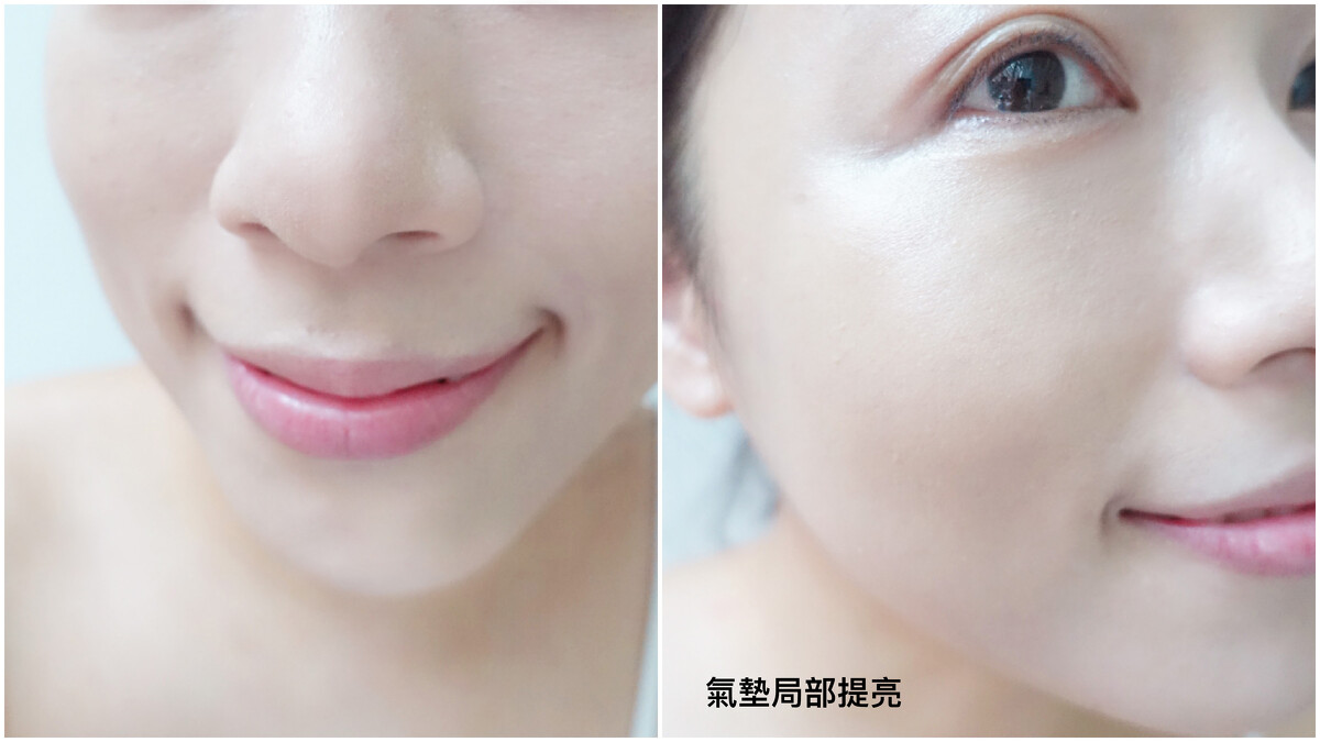 M編還有使用小撇步,上完粉底後,只要把氣墊加強拍在顴骨處、鼻樑以及下巴等部位,真的就是媲美高級打亮產品的亮度!五官也更加立體~