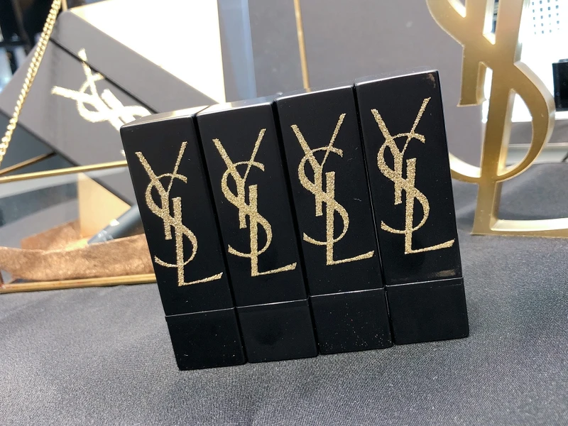 YSL 2018聖誕彩妝「金燦情迷」系列以YSL經典黑、金雙色貫串,從外包裝就洋溢非凡時尚氣場的美,尤其是最代表性的口紅,今年以最熱賣六色推出「奢華緞面唇膏金燦限定版」,換上前所未有的黑色管身,加上放大版的YSL Logo猶如金色花火般耀眼。