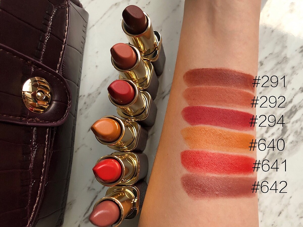 含3款亮面皮革款、3款絲絨柔霧款,唇膏質地加入更高比例的植萃精華油成分,滑順不卡紋,輕鬆勾勒出秋冬時尚的亮澤光與絲絨霧面唇。