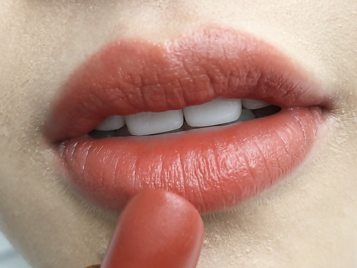 比一般紅色還要再深一點的蕃茄紅,最大優點就在於顯白,即使亞洲人的偏黃肌擦起來也不怕更暗沉或蠟黃。不過深色難免帶有成熟感,因此擦的時候不建議畫滿雙唇,可以先從唇內側畫起,接著輕抿雙唇,接著再以指腹輕點並向外暈開,形成自然的漸層唇妝,如此就能兼顧顯白與減齡。