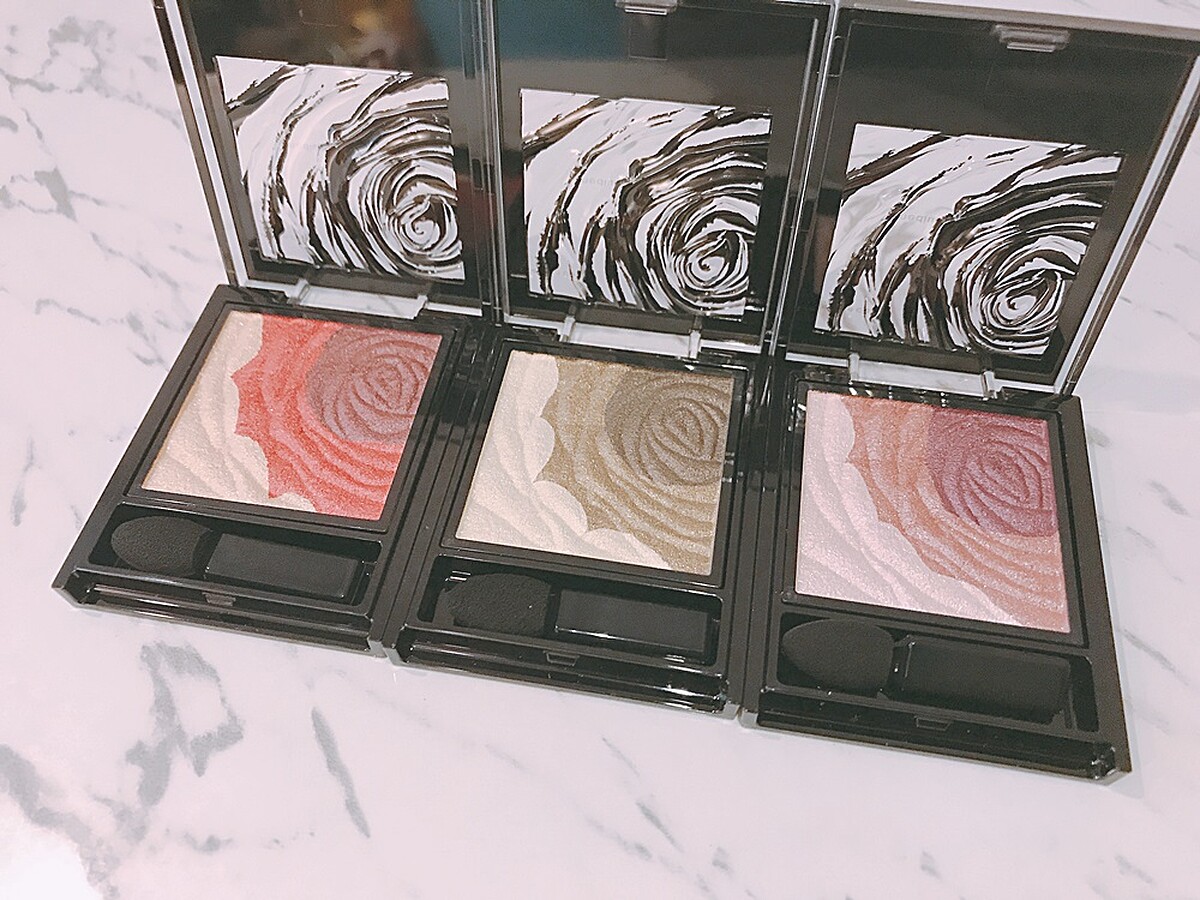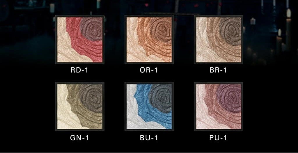 獨特絲絨般質地,從外層花瓣到中心花蕊是絕美漸層色調,包含深咖啡、神秘藍、墨綠、大地色、莓紅色、紫紅色等,共推出6款色號,#大地色在日本相當熱賣,一盒就能畫出深淺完美的眼妝。