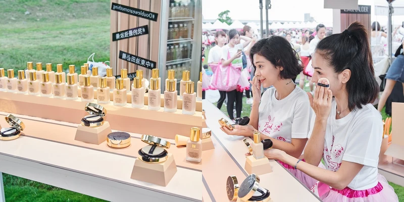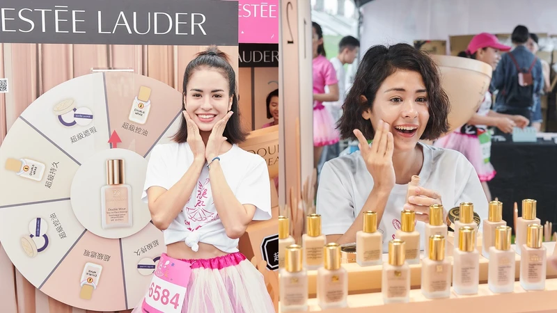 只不過還沒開始化妝,兩人目光就先被可愛的攤位佈置吸引,「有冠軍獎盃可以打卡拍照,還有超級有名的粉持久玩美特調奶茶可以喝…不過我們最愛的還是Double Wear粉持久底妝軍團啦!」聲明對粉持久底妝絕不變心的艾美和達達,立馬乖乖坐下拿起粉底上妝,兩人笑說,覺得自己好像在戴上超強的裝備,有種要上戰場的感覺!
