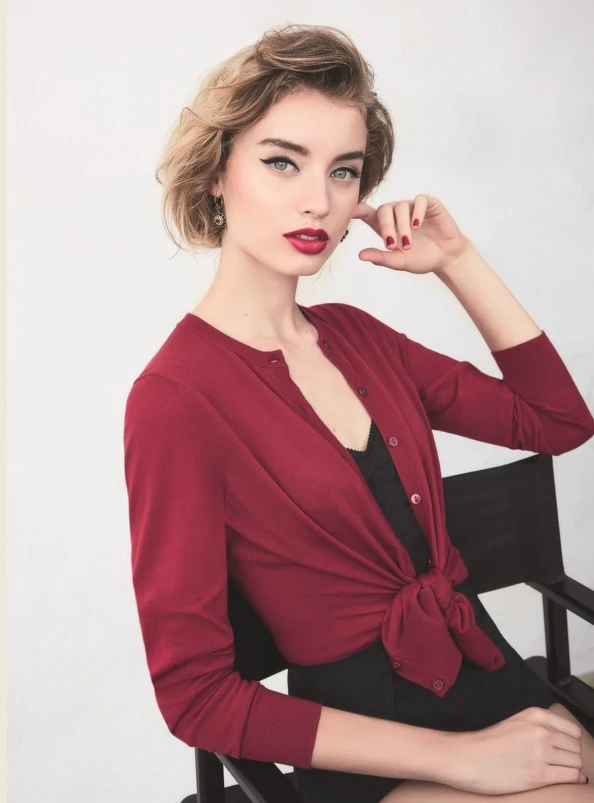 大利超模Giulia Maenza 完美詮釋出女人的婀娜多姿。義大利超模Giulia Maenza 妝容以Dolcissimo 綻放凝霧唇釉#RUBY 10 復古甜美的石榴紅色,勾勒漆黑上揚的貓眼眼線,呈現出女人復古甜美性感的風格。
