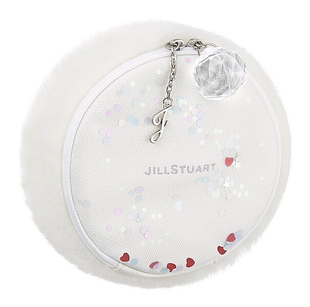 限定彩妝都裝在粉雪般柔軟的皮草化妝包,上面粧點著圓形的星星亮片和愛心,拉鍊處掛著閃爍的水晶球和「J」LOGO吊飾。