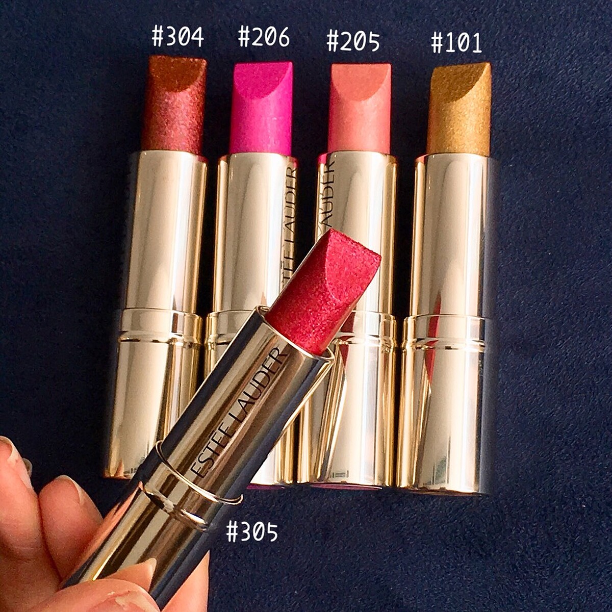 色號:#101冰霜金鑽、#205美人魚裸、#206濾鏡粉紅、#304高級棕紅(主打色)、#305彩虹玫瑰(主打色)