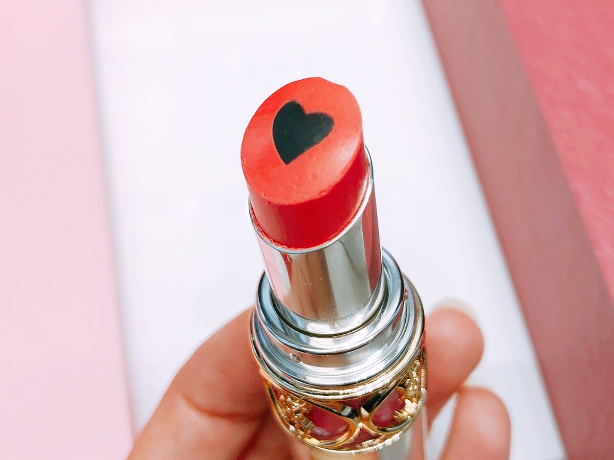 YSL情挑誘吻豐潤蜜唇膏 YSL情挑誘吻豐潤蜜唇膏乍聽名字雖然長,但外型非常有記憶點,因為口紅中間有顆黑色愛心。不過別擔心,它擦在唇上不是真的黑色。