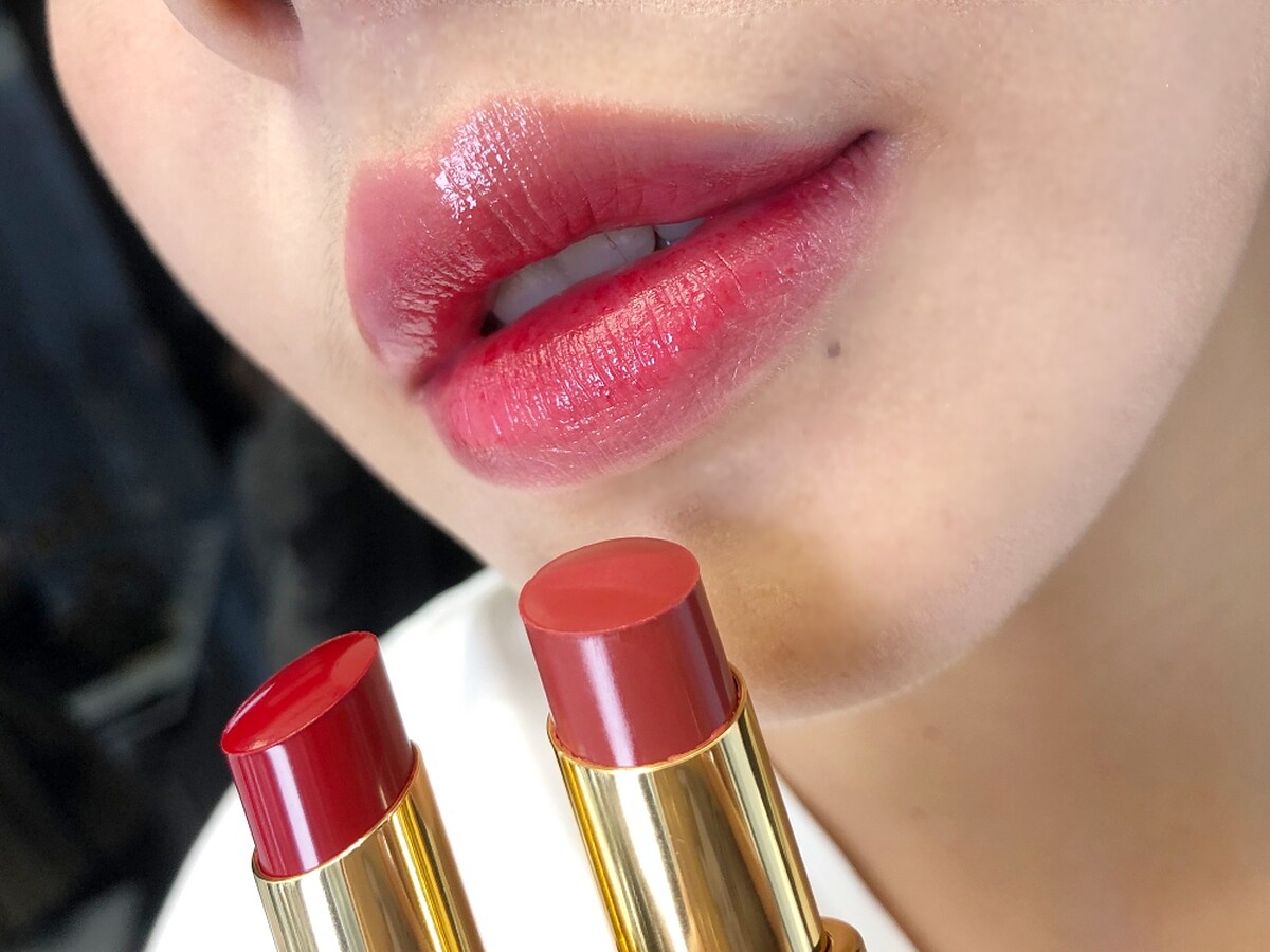 被暱稱為「金管口紅」的情挑誘光水唇膏,光從製作過程就很厲害,是以獨特的「溫熱導入」技術製成,也就是必須趁唇膏還是溫熱液態時,直接由下而上注入管中的技術,讓唇膏極度服貼於管身,不易毀損變形,更能讓唇膏擁有超融感水光質地。同時質地中還有65%植物油、紅石榴修護精粹、玻尿酸微球體,因此擦在唇上,更顯得水水潤潤,是YSL口紅入門的首選。