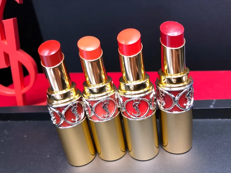 被暱稱為「金管口紅」的情挑誘光水唇膏,光從製作過程就很厲害,是以獨特的「溫熱導入」技術製成,也就是必須趁唇膏還是溫熱液態時,直接由下而上注入管中的技術,讓唇膏極度服貼於管身,不易毀損變形,更能讓唇膏擁有超融感水光質地。同時質地中還有65%植物油、紅石榴修護精粹、玻尿酸微球體,因此擦在唇上,更顯得水水潤潤,是YSL口紅入門的首選。
