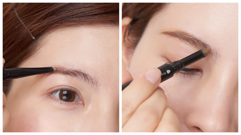 畫眉的第一步驟:完美塑形。M編用KATE「雙用立體眉彩筆N(扁平芯) BR-1」,一支擁有雙重效果,快速打造立體眉型。