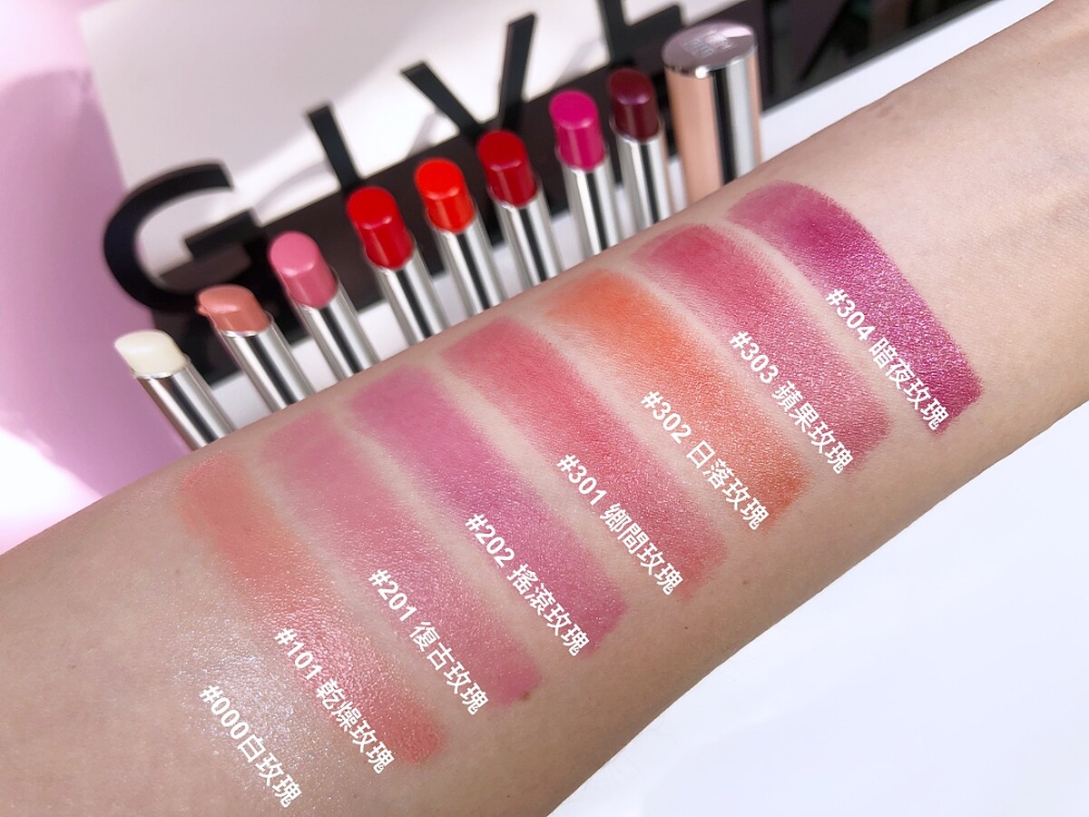 ↑其中的#000白玫瑰是白色珠光,可用來疊擦其他顏色、#101乾燥玫瑰則是溫柔的裸粉色。