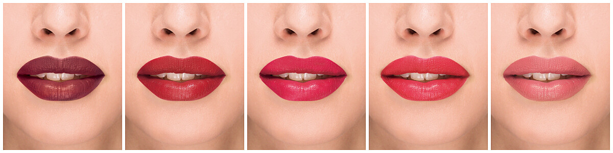全系列出5色唇膏,從濃郁酒紅至乾燥玫瑰色、珊瑚橘紅到焦糖奶茶色,注入天然色料配方和山茶油,具保濕的霧面效果。