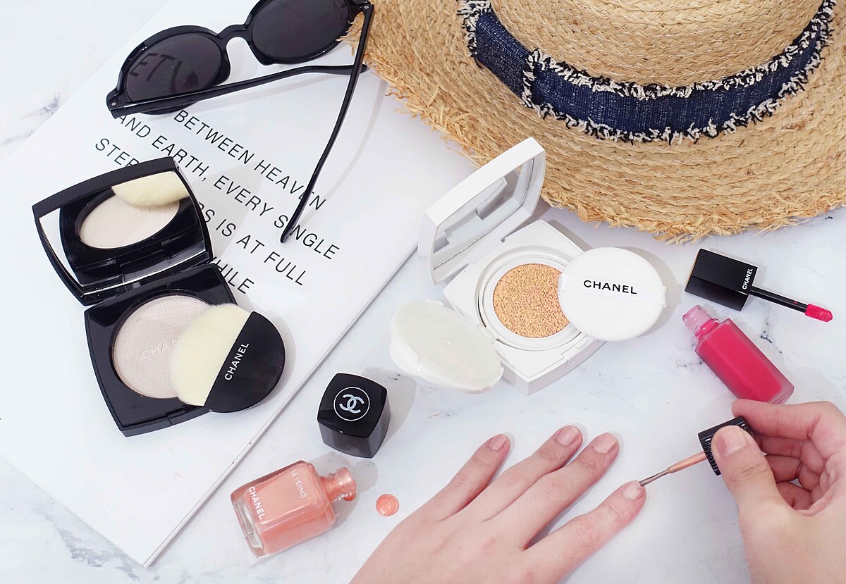 搭配香奈兒美白限量彩妝系列,畫出開春的好運妝,這盤美到讓人跪的立體光亮采盤,可使用在鼻梁以及顴骨。超夢幻的金色、粉色珠光交織出的晶透的虹彩立體光,立刻刷出混血立體輪廓,讓底妝質感更加清新,閃耀奢華的細緻光澤。桃花不斷電就靠這支超炫耀絲絨唇露「濃媚草莓粉」,輕輕一抹雙唇馬上戀愛ing。最後再加碼時尚恆彩指甲油,指尖擦上溫柔姊姊色「珠光甜粉橘」(#695粉珊瑚),舉手投足間,超強發電機可愛甜姐兒就是妳!