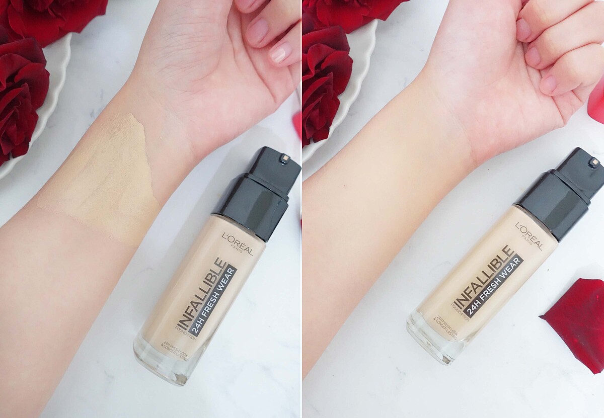 絲滑雪紡質地一推開,果然如第二層肌膚般貼膚超自然,立刻提亮M編熬夜(追劇)的菜菜色!細緻的微霧感奶油光澤美翻了~讚聲連連的24H無瑕完美粉底液,各種優點講不完!完美實測開始,速速看下去~