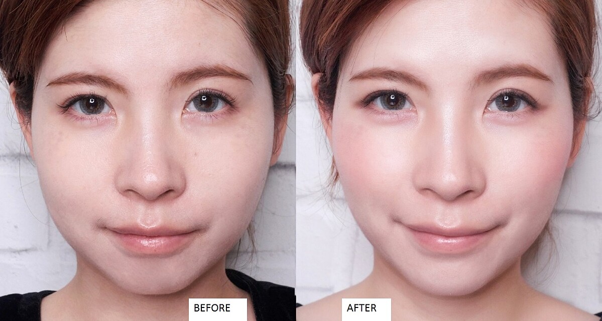 白色帶粉的霧面質地不會膨脹同時又能提亮,讓兩頰兩側相對降低彩度,輕鬆打造出視覺上的小臉感。