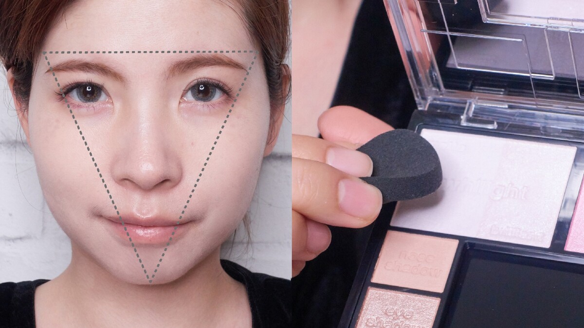 那到底什麼是”白色倒三角”臉讚妝呢?原來就是用「白色」來修修臉,用白色系的打亮色強調臉部骨骼,增加臉部倒三角位置的光感,看起來就能擁有小臉的效果。