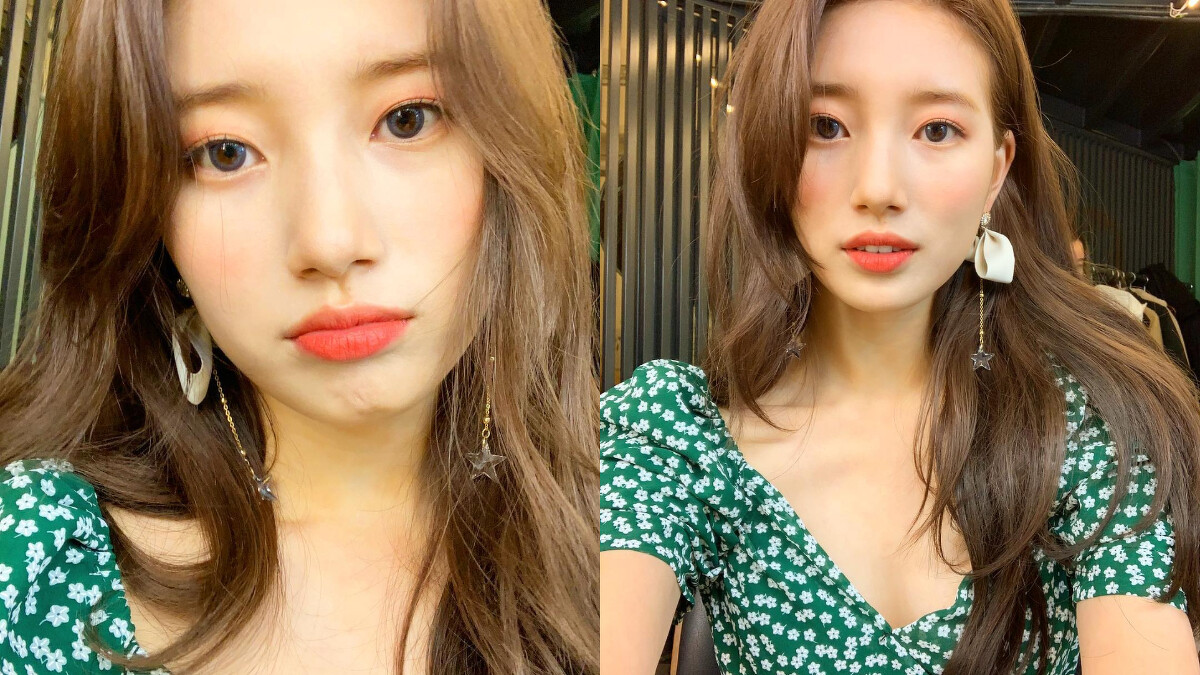 國民初戀秀智的妝容,絕對是眾多女孩們的模仿範本,眼妝、腮紅和口紅一致選擇溫暖的橘黃色系,搭配淺髮色相當有精神。