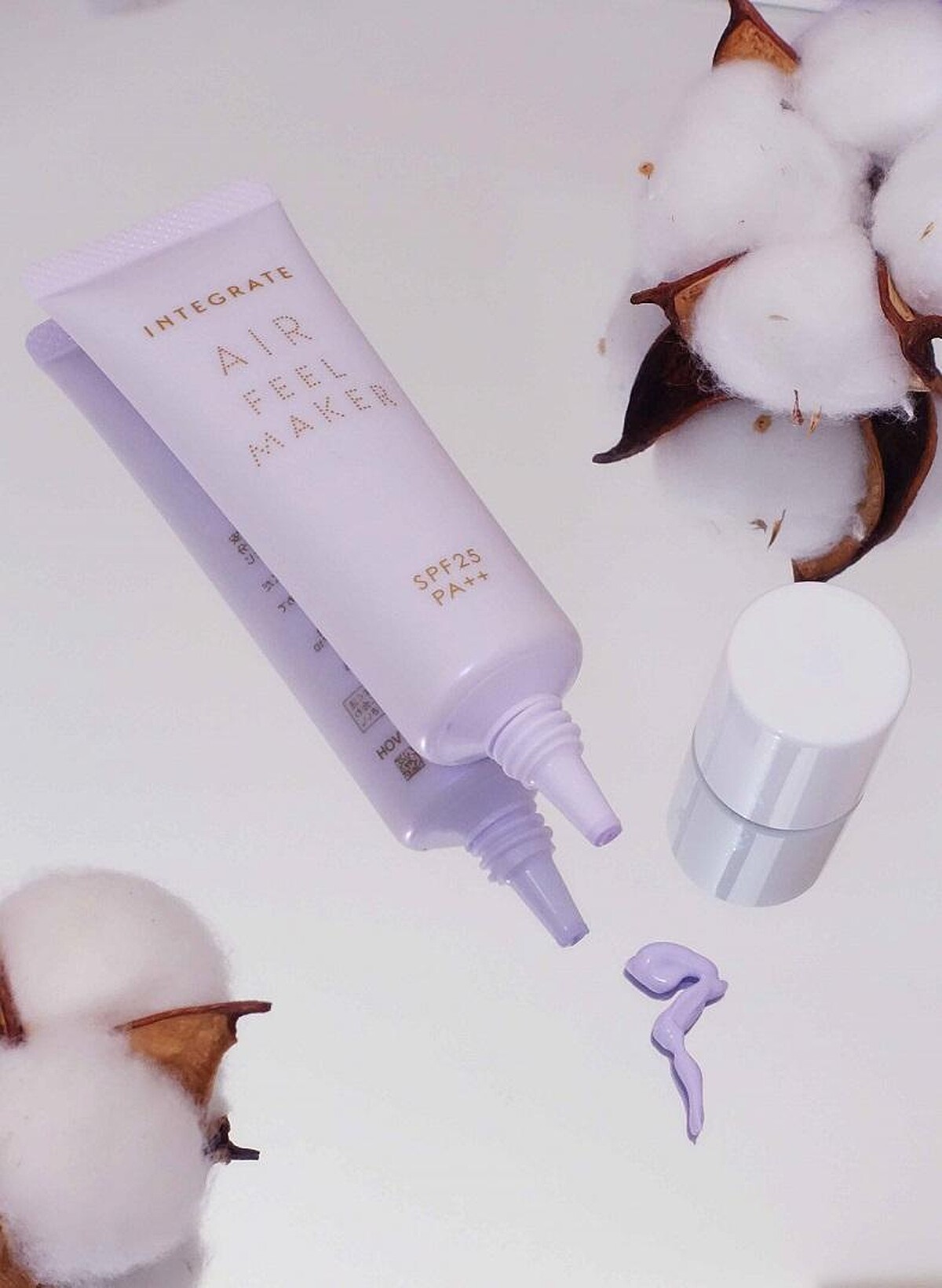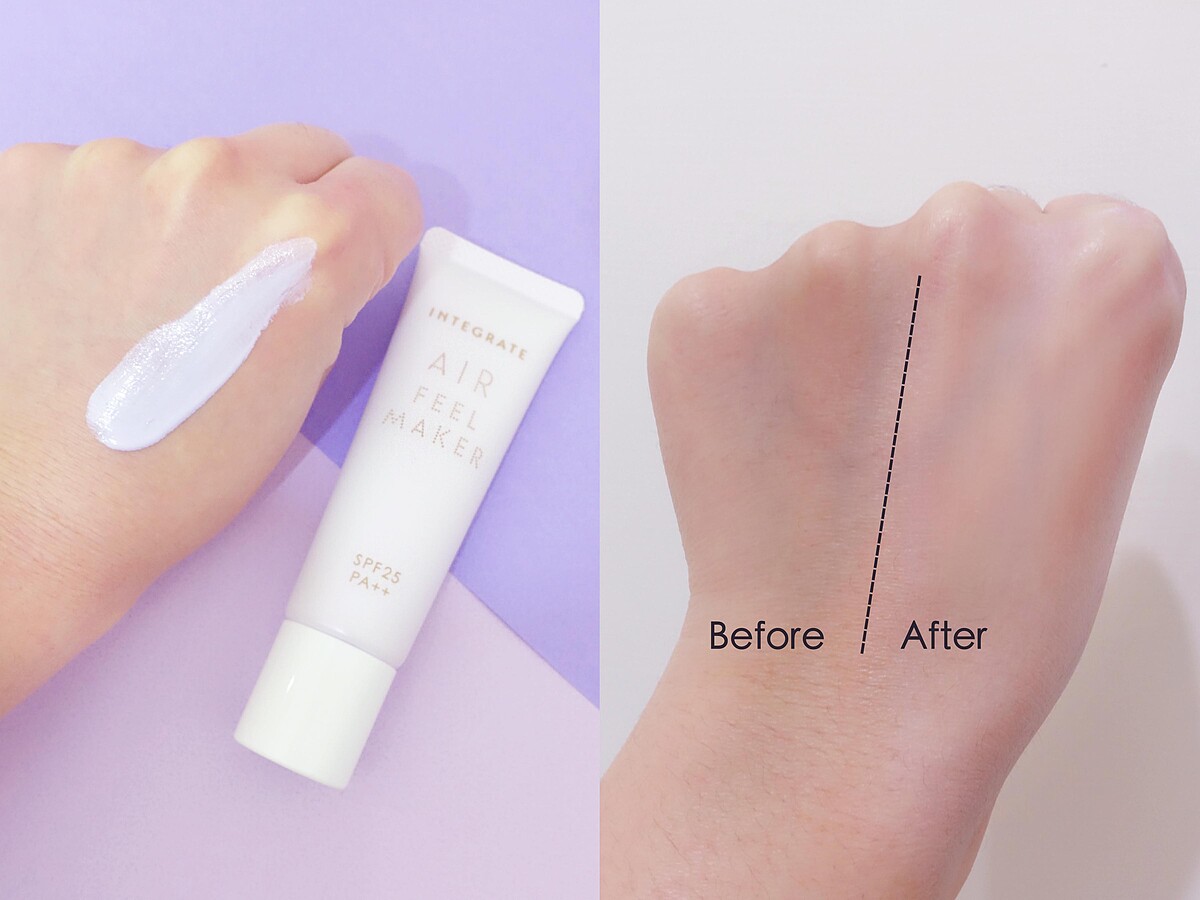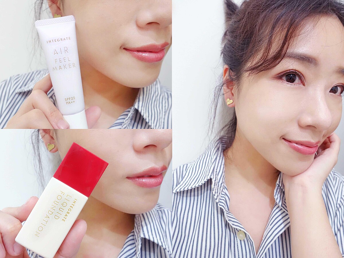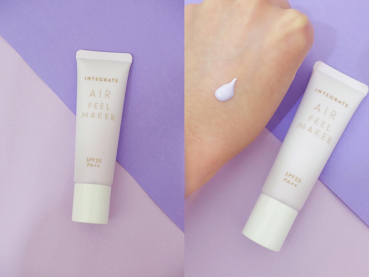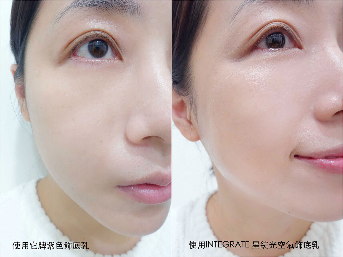 粧前如果少了「飾底乳」這一步,怎麼上粧都覺得哪裡不對勁,飾底乳一萬點的好處,能夠改善膚色不均、增加肌膚光澤、修飾柔焦毛孔,幫底粧打好基礎,最重要的就是讓M編最在意的暗沈蠟黃膚色,回歸偽素顏的粉嫩氣色。過去很懼怕紫色飾底乳的原因:以為可以修飾蠟黃,沒想到卻像是一層假面死白臉,比本來的蠟黃膚色看起來更面目可憎,但最近試用了INTEGRATE星綻光空氣飾底乳,居然完全顛覆了M編對於紫色飾底乳的刻板印象,自然的薰衣草紫光,一抹就像是天生自帶的好氣色,彷彿少女肌的柔嫩光澤,整個人溫柔感順間翻倍,氣質爆棚,即使不上底粧也能有神亮顏好氣色。