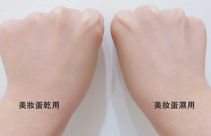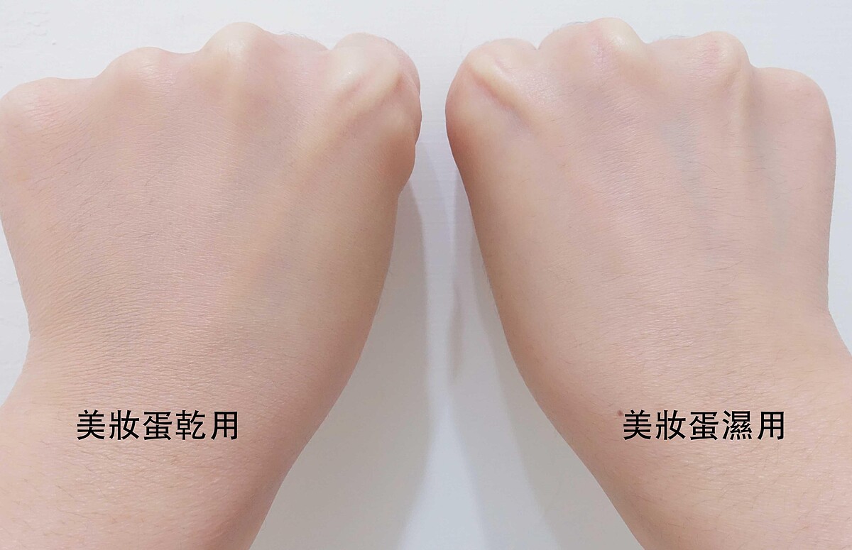 美粧蛋乾濕使用會讓粧感些微不同,濕用的粉感更少更透,想要遮瑕效果強一點M編就建議乾用。