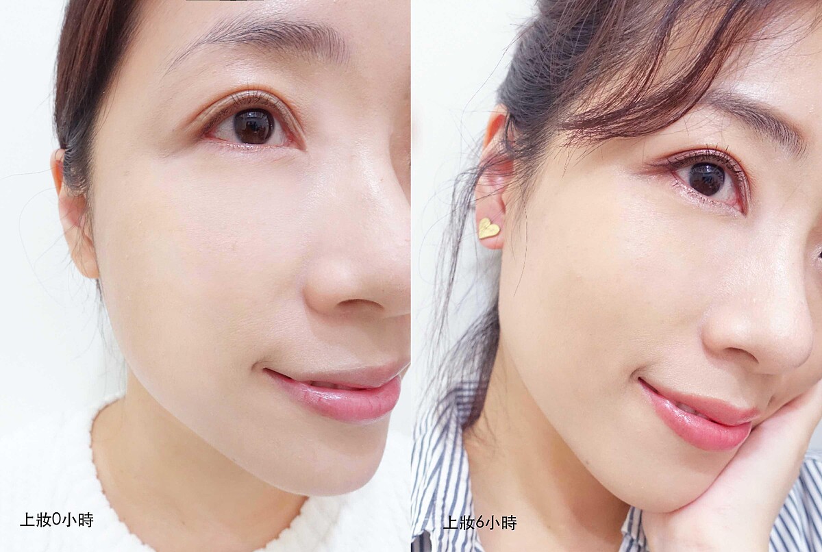 底粧之前有了星綻光空氣飾底乳加持12小時長效控油、持粧,徹底擺脫黃臉人過了中午就開始出油暗沈原形畢露的悲劇,上粧6小時後肌膚狀態幾乎跟剛上粧一樣完美,T字部位以及鼻翼兩側肉眼看不出脫粧,一整天下來,粉底與油脂融合後的奶油肌光澤超迷人。