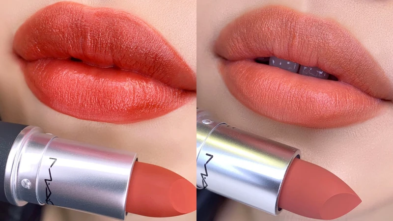 (左)#Werk, Werk, Werk是致敬#RUBY WOO 的熟成櫻桃紅,活力又帶點淘氣的小美人魚色 。 (右)#Reverence時髦簡約的杏仁裸粉,毫不費力卻流露鮮明個性,致敬Medium Rare最恰如其分的美。