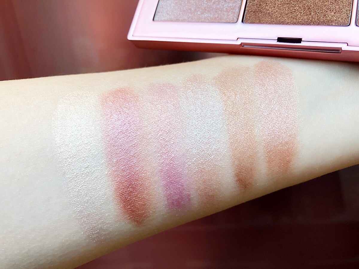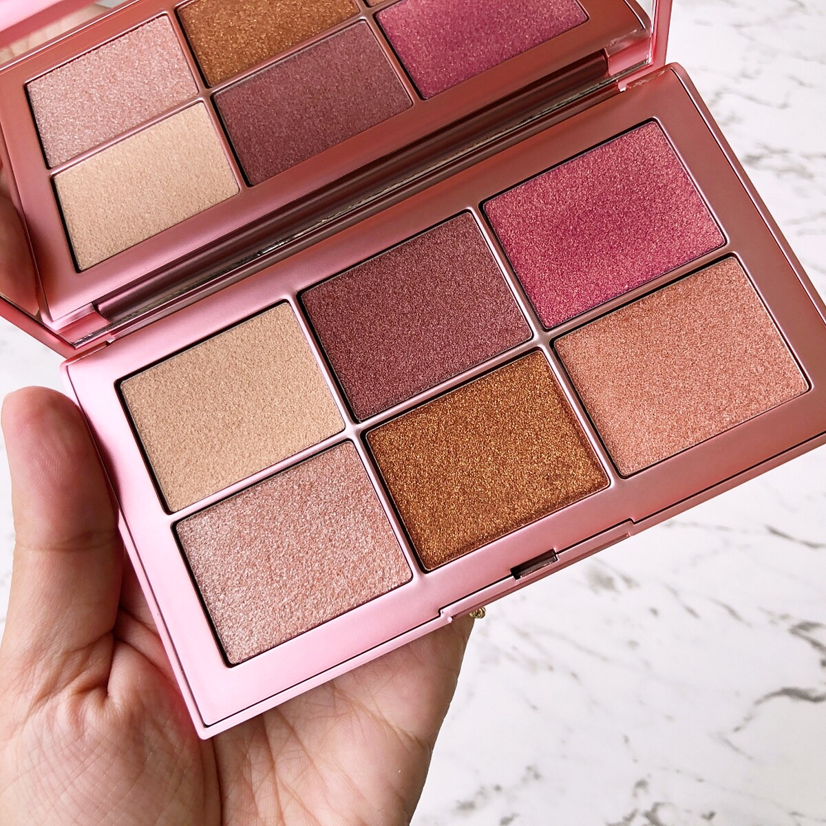 不愧是20週年的限量系列,全系列四個品項,包括加大版腮紅、六色眼影盤、護唇油、打亮液通通穿上「玫瑰金」包裝,再度美出新高度!
