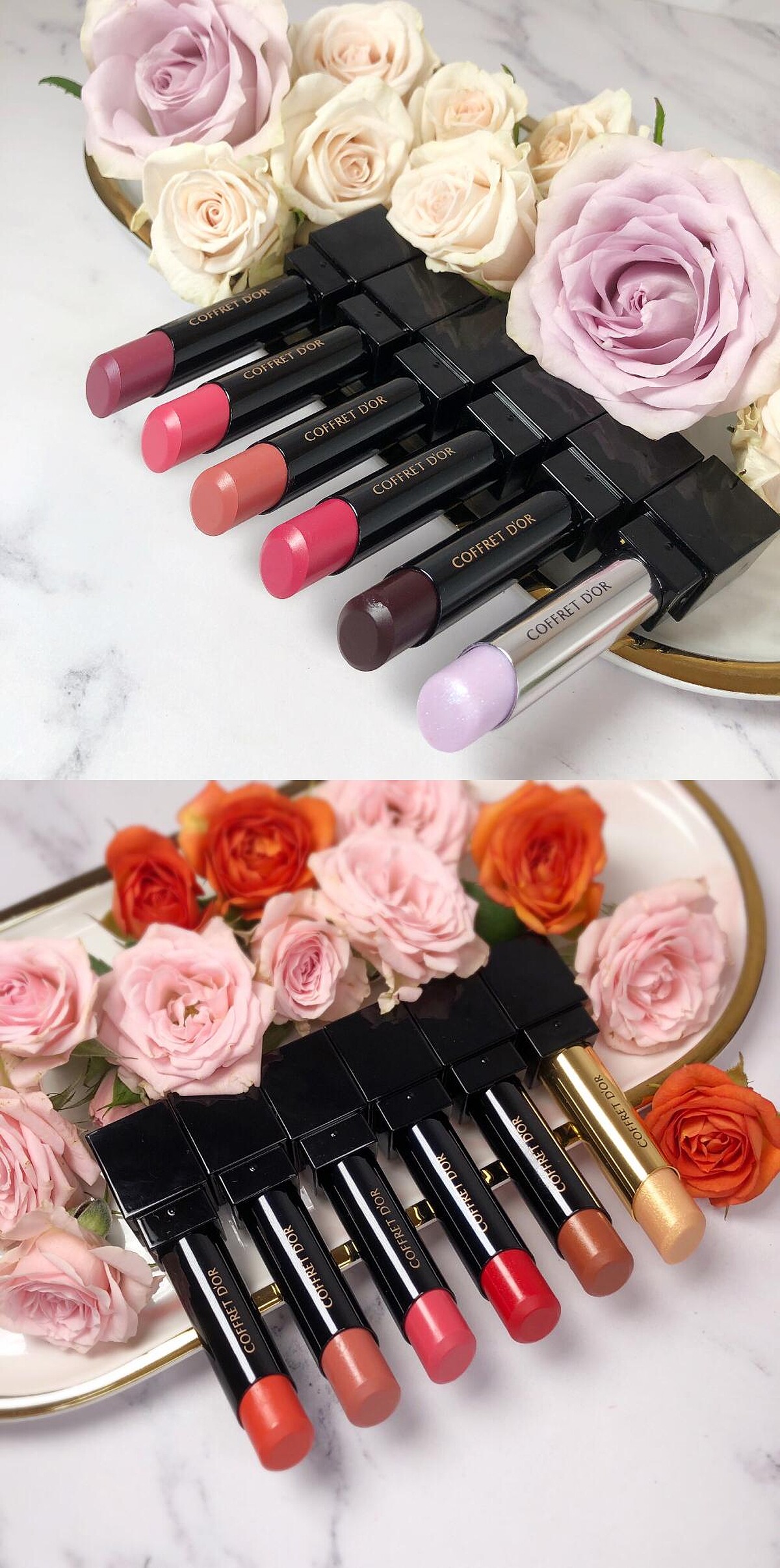 佳麗寶COFFERET D’OR這次推出的全新水光我型口紅堪稱「改變命運的唇膏」!首先,這款口紅本身就分為冷色基調色彩以及暖色基調色彩,依照自己肌膚的基調來挑選本命色,絕對不出錯!