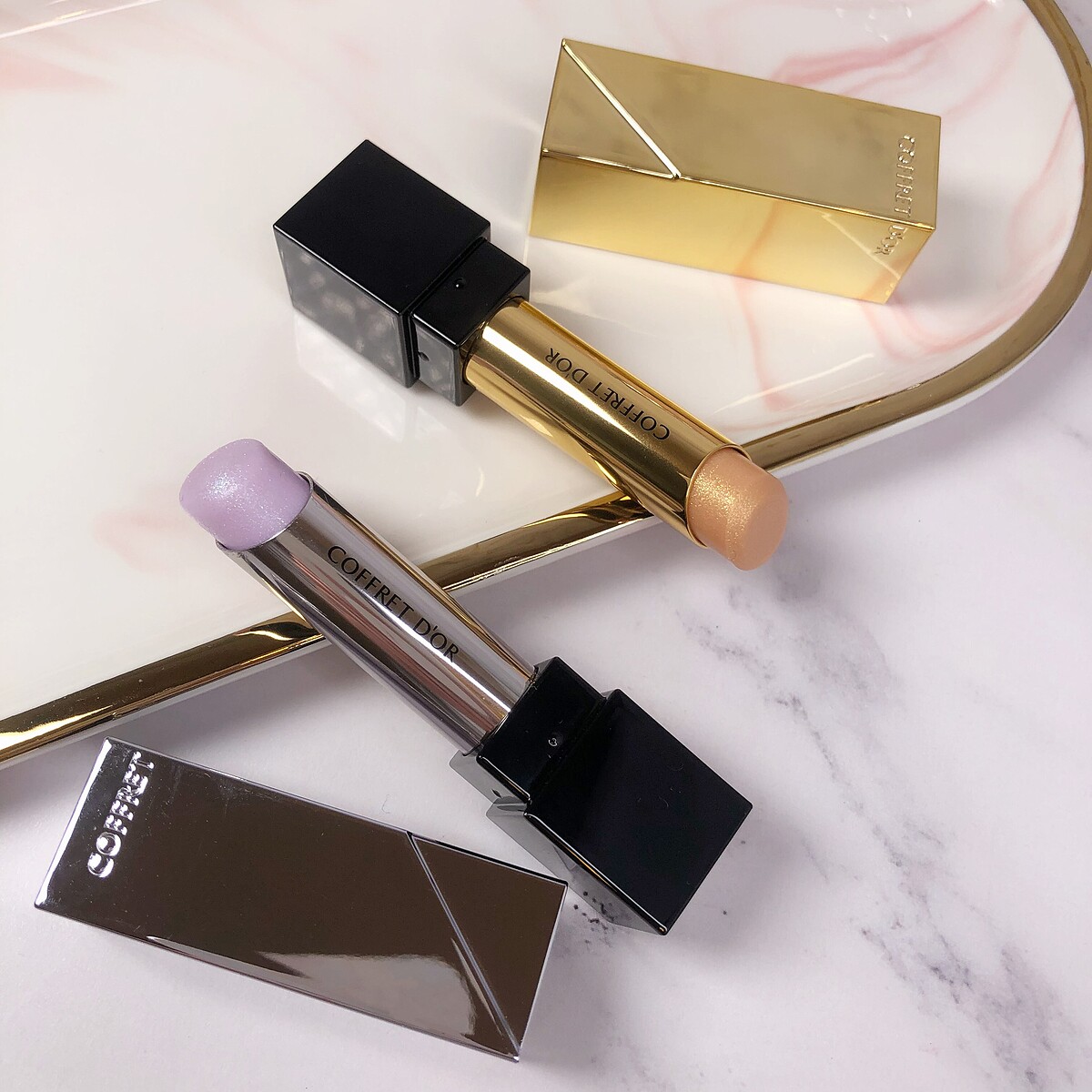 妳我都知道女生非常善變,如果妳喜歡是與自己肌膚色調相反的個性色也沒問題!COFFERET D’OR這次推出兩款神奇的轉化色口紅,一款是帶有冷色調光澤的薰衣草紫 #PT02,另一款則是帶有暖色金黃光澤的 #GD01。