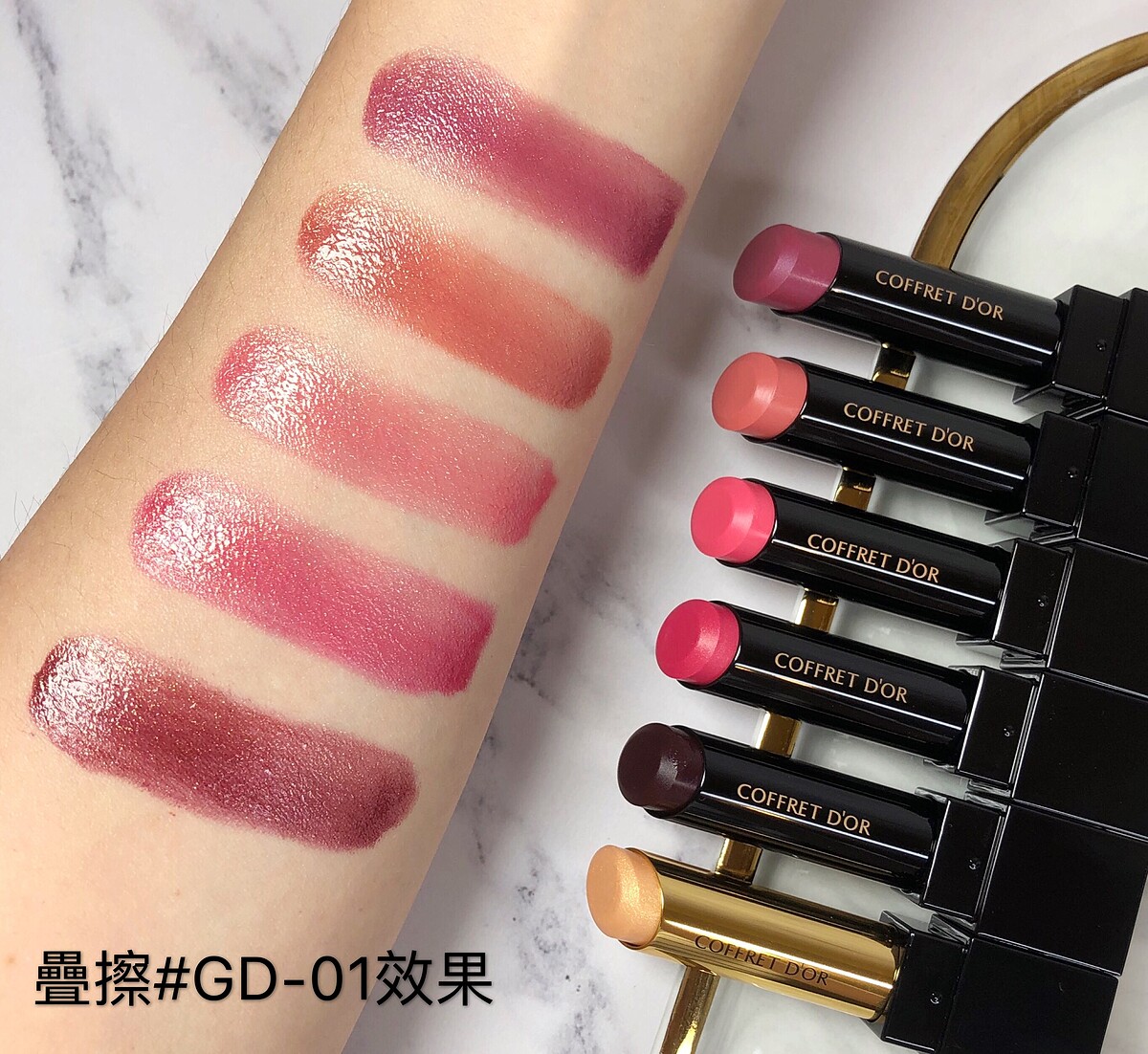 而金黃光澤的#GD01也可以讓原本冷色調的唇膏,變得明亮、更具耀眼光彩,也讓冷色系口紅顯得更柔和,適合暖色調YELLOW BASE的膚色。