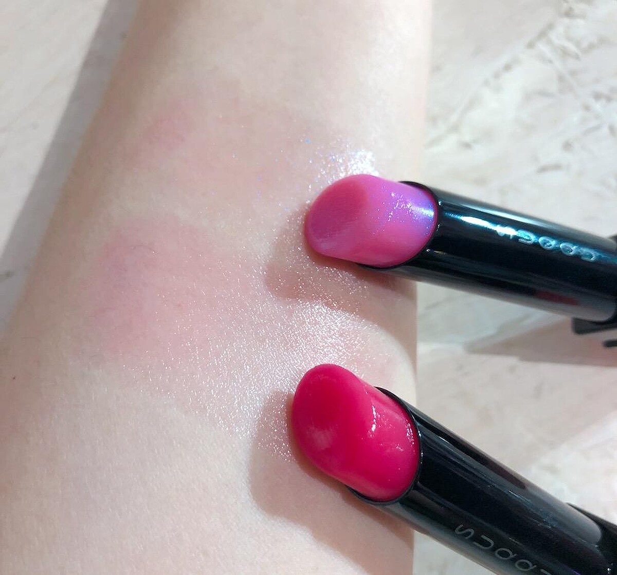 潤唇膏般的柔滑質地,會因唇部溫度融化而變得更加柔滑膚觸。將膏體中的顏料減少至極限,淡柔色澤中更能顯線光亮透明感。並添加微量染料,自然透出淡淡的霓虹色澤。當打底可以增加原本素唇血色感,在唇膏後疊擦更顯亮澤水感。