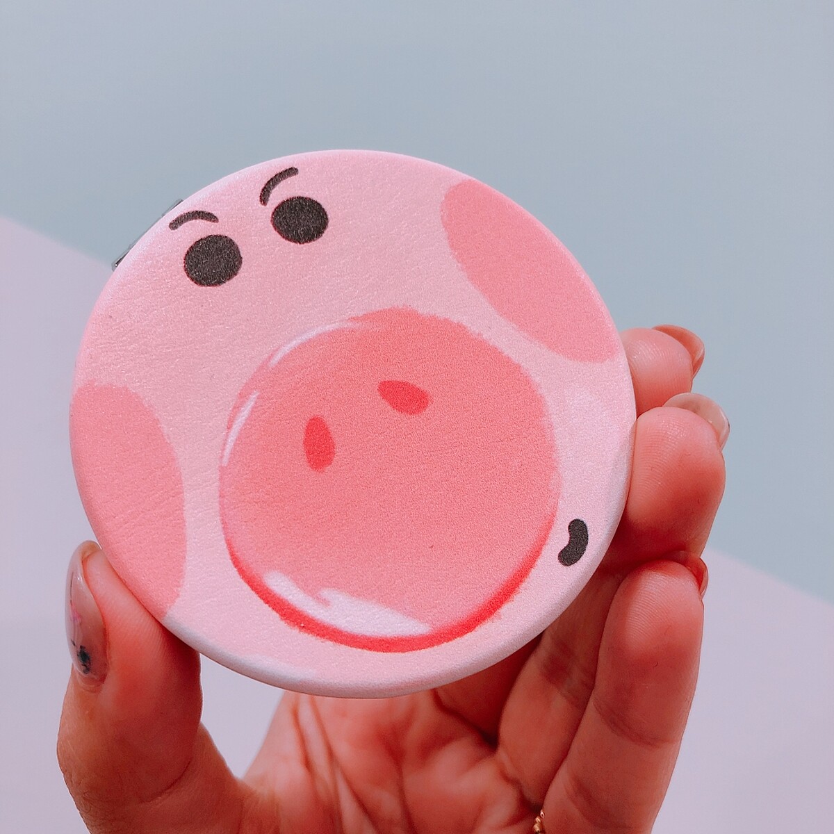 超可愛的火腿豬小鏡子輕薄不佔空間,方便隨身攜帶。而且同時擁有等倍鏡與擴大鏡,雙鏡展現妝容零死角。
