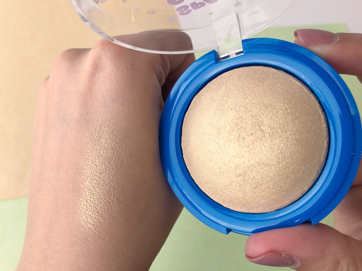 打亮餅運用獨特「烘焙」技術烤製,能使珠光效果提升70%,展現自然立體亮澤不顯毛孔。搭配運用抓粉與釋粉力極佳的類馬毛所製成的「三眼怪造型閃到外太空打亮刷」,輕鬆刷出極亮美肌。