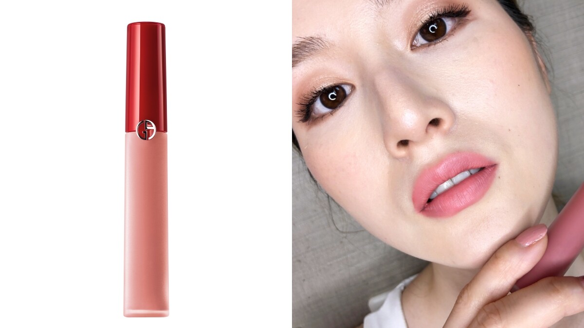 使用全新亞曼尼訂製雪霧粉系列「奢華絲絨訂製唇萃#204」,淡淡的絲絨光搭上雪霧伯爵色調,營造出女人自然優雅柔美的面貌。