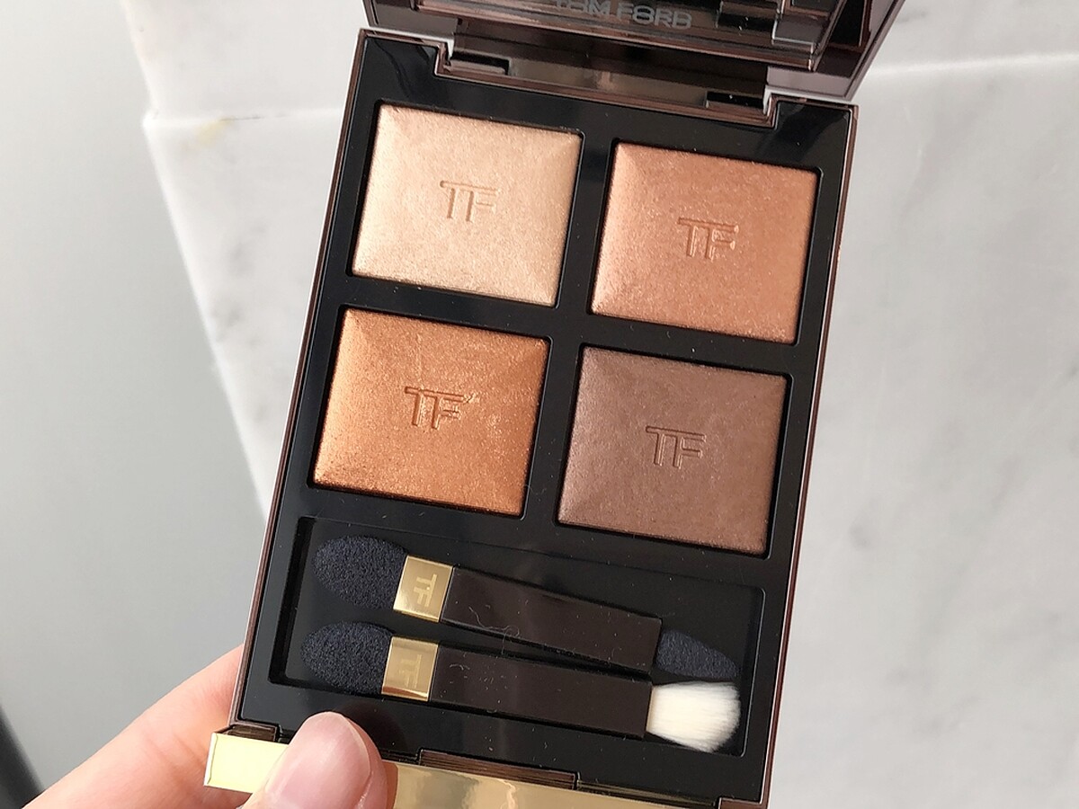 TOM FORD明星產品「高級訂製四格眼盤」這次針對PRISMA系列的上市,推出了3款四格眼盤,上頭都有TF LOGO壓紋,代表著是可以乾濕兩用眼影,因此用途更廣,而且這3盤正好是不同時段的夕陽景色,分別是#03 BODY HEAT魔幻日落、#04 SUSPICION日落金沙、#05 DOUBLE INDEMNITY日落餘暉