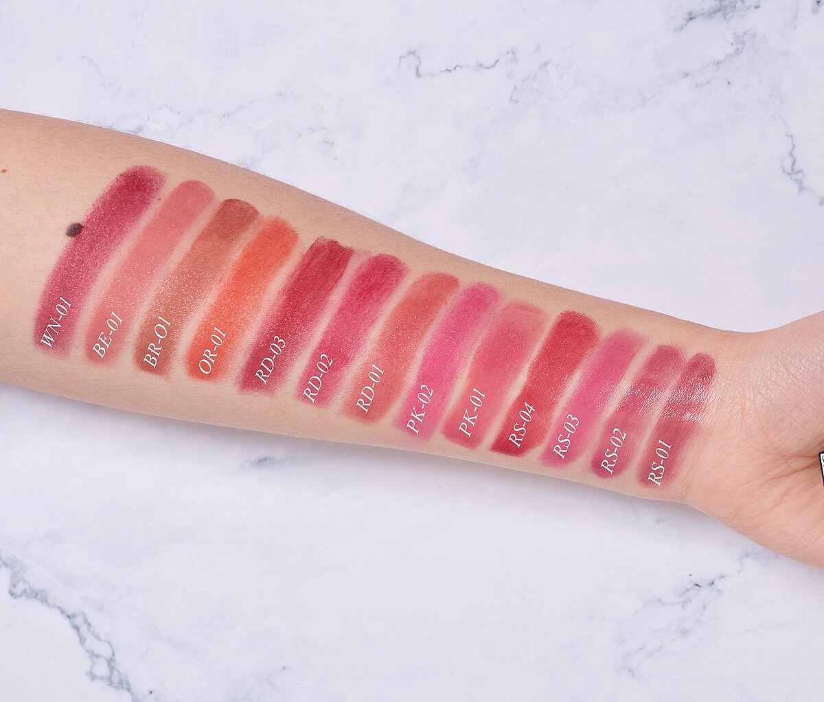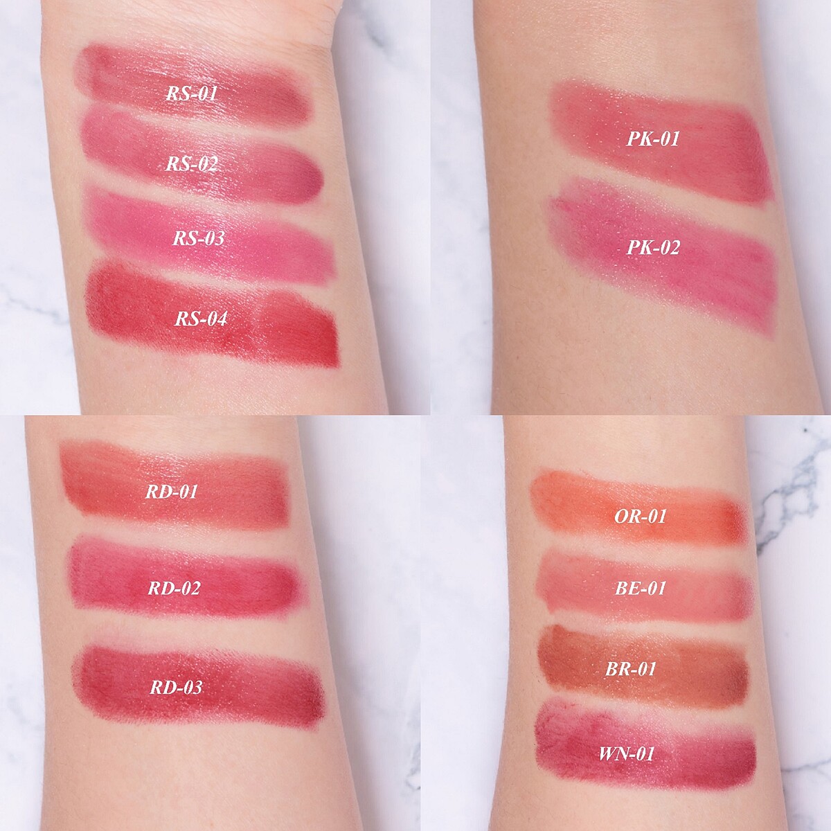 而偏黃的暖色肌,容易給人膚色偏暗沉的感受,因此在挑唇膏的小技巧上,建議可選擇帶有紅色&橘色調的唇膏,如:OR-1甜橙、BR-01泰奶色、RD-01覆盆子、RS-04玫瑰,都能與膚色相襯,有助提亮膚色,看起來就會很有精神。