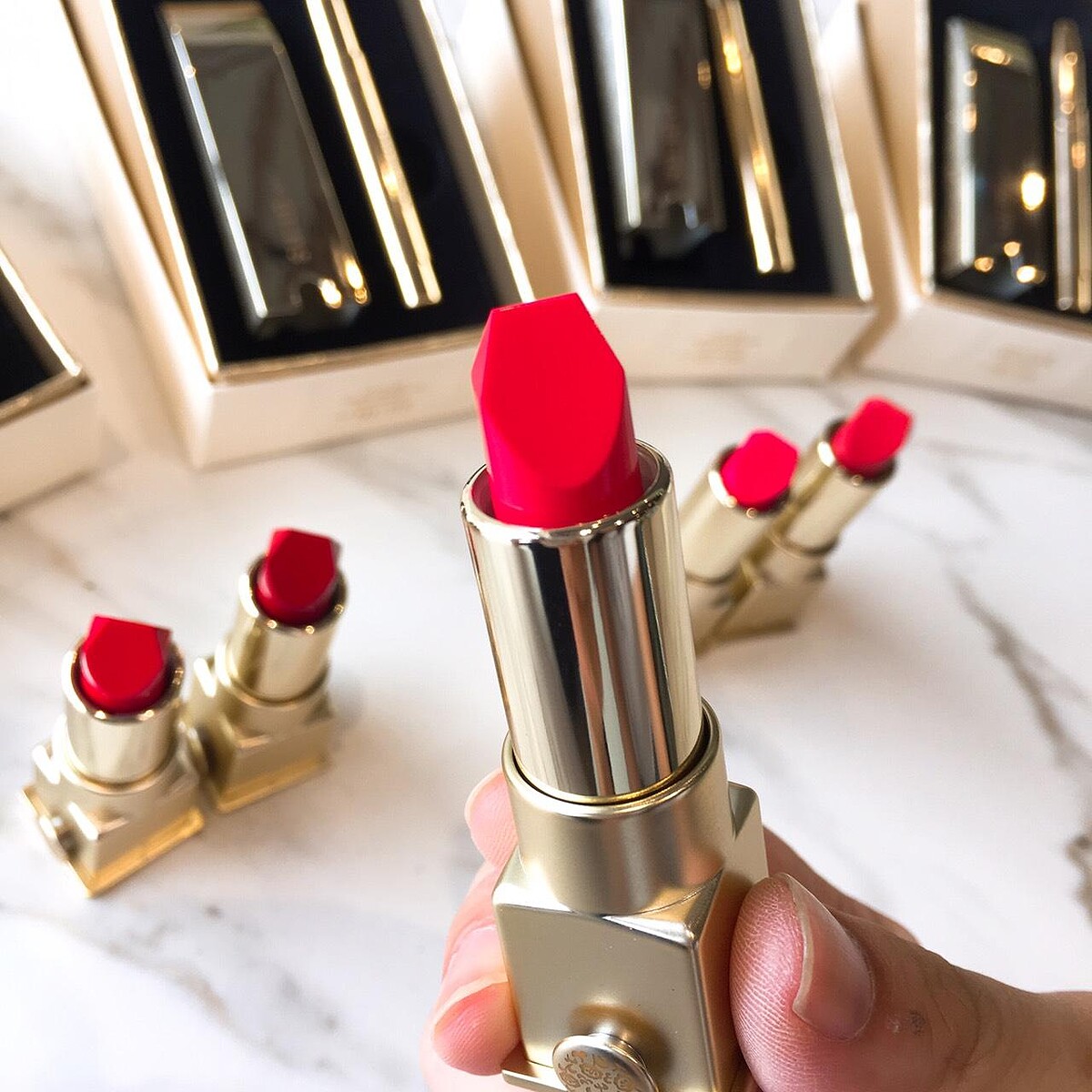 塗抹後不僅顯色,光澤度也極佳,由於採用了折射率高的橄欖保濕美容油,在光線照射到嘴唇後會反射光,因此不論從什麼角度看,雙唇都顯得非常立體且極為閃耀。唇色方面,全系列共有5色(#01 Red、#02 Deep Red、#03 Coral、#04 Pink、#05 Brick Orange),有品味極佳的「深紅色」,以及獲選為2019代表色的「珊瑚色」5款顏色可供選擇,能完美詮釋各種華麗妝感。使用時,當它接觸到嘴唇的瞬間,就會感到如同融化般服貼的濕潤質地,而且鮮明的色彩令人驚豔,內含高保濕「橄欖美容油」,可讓雙唇滋潤一整天,隨時看起來都充滿自信與活力。